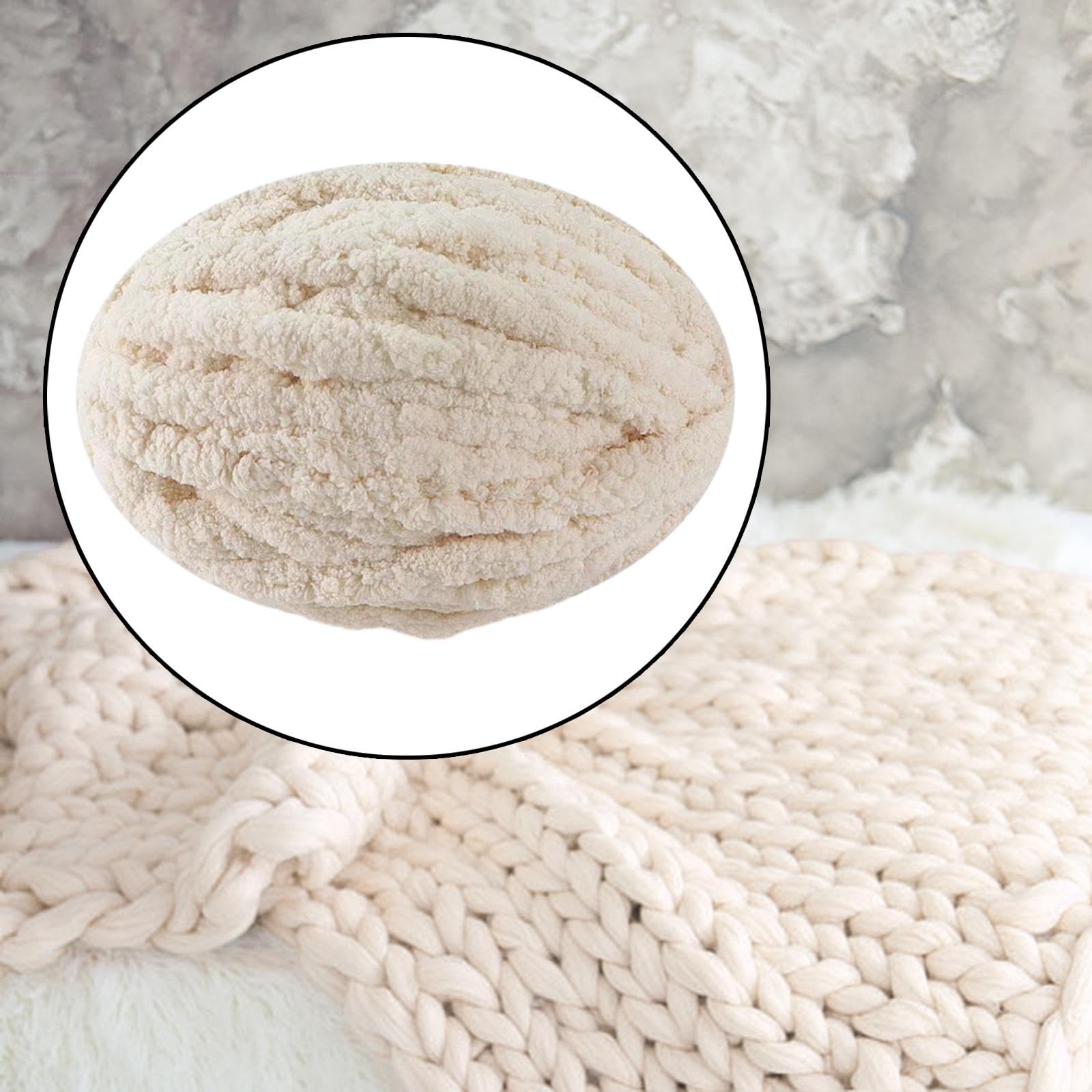 QKHEE シェニール 毛糸 ベルベット糸 ビロード糸 4玉セット1玉95G 約180m ぎ針編み糸 極太 ふわふわ毛糸 太い毛糸 毛布、スカーフ、帽子、セーター、クッション、お人形などの編み物に使用できます (ベージュです)