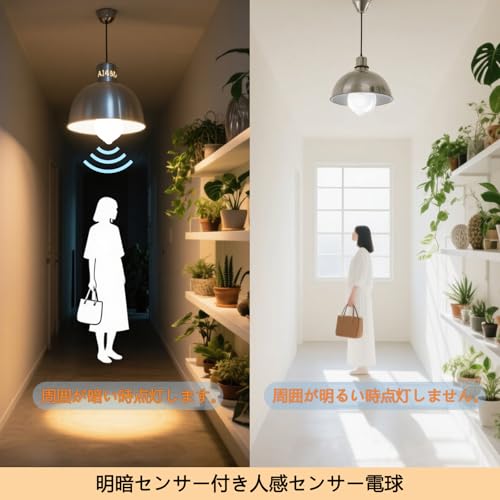 DanYee LED電球 人感センサー E26口金 9W 【2個・2年保証】 明暗センサー付き 自動点灯・消灯 電球色 3000K 900lm 60W形相当 非調光 消し忘れ防止 階段 玄関 廊下 トイレ (9W電球色【2個セット】)