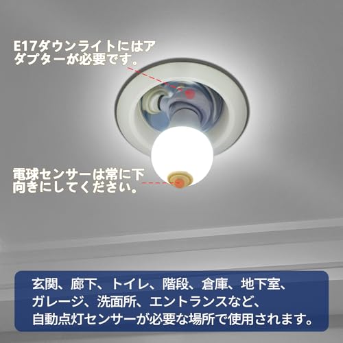 Pispoer LED電球、光センサーと人体センサー付き、E17口金、ハロゲン電球80 Wに相当し、色温度6000K、2個装