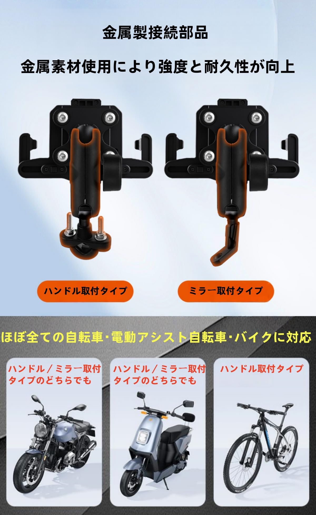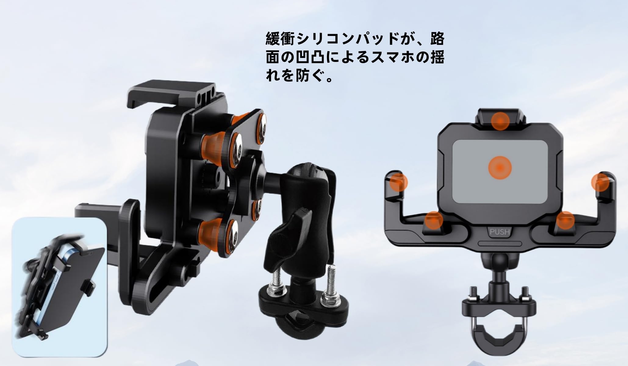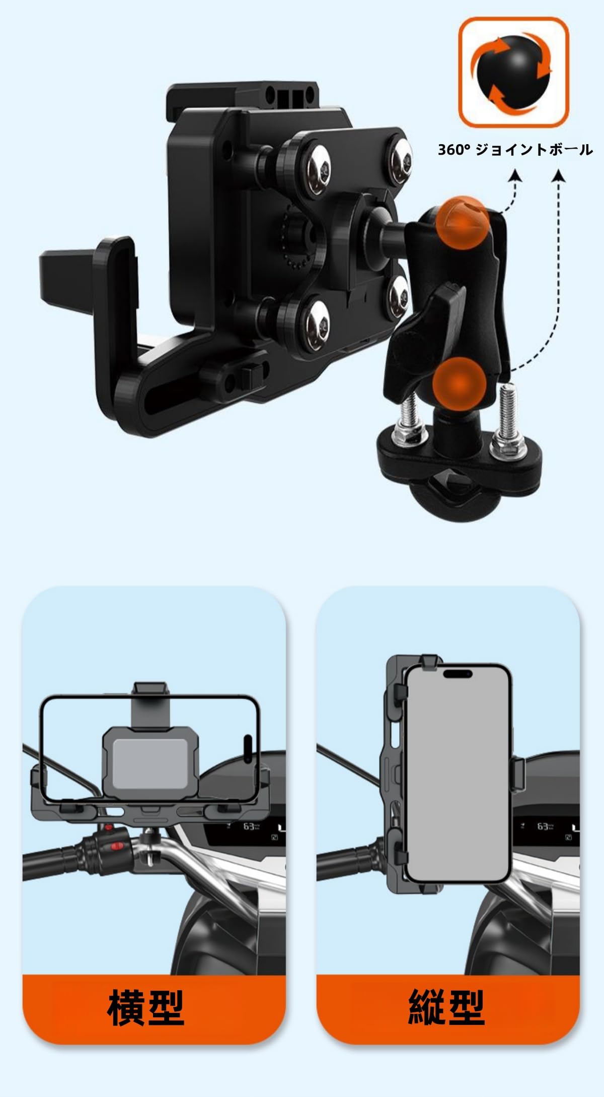 2025新登場 Aomiker バイク スマホ ホルダー スタンド : バイク 携帯 ホルダー オートバイ スマホ 固定 バイクホルダー 原付 自転車 360度回転 振動吸収 片手操作 iPhone Air 17 17pro 17pro max iPhone 16/15/14/13/12/11/8/7/6 plus pro max mini, アンドロイド 4.7-6.8インチ オレンジ