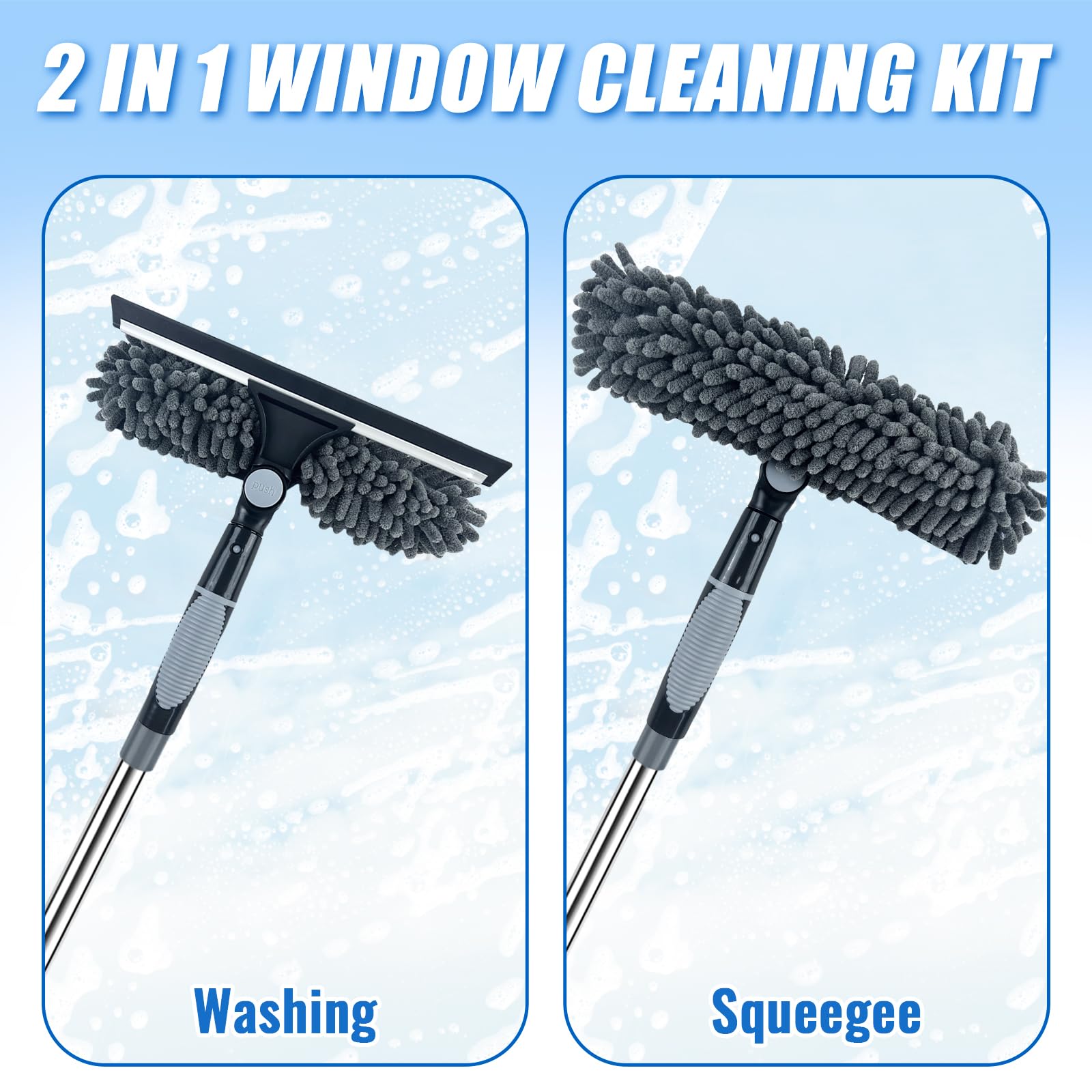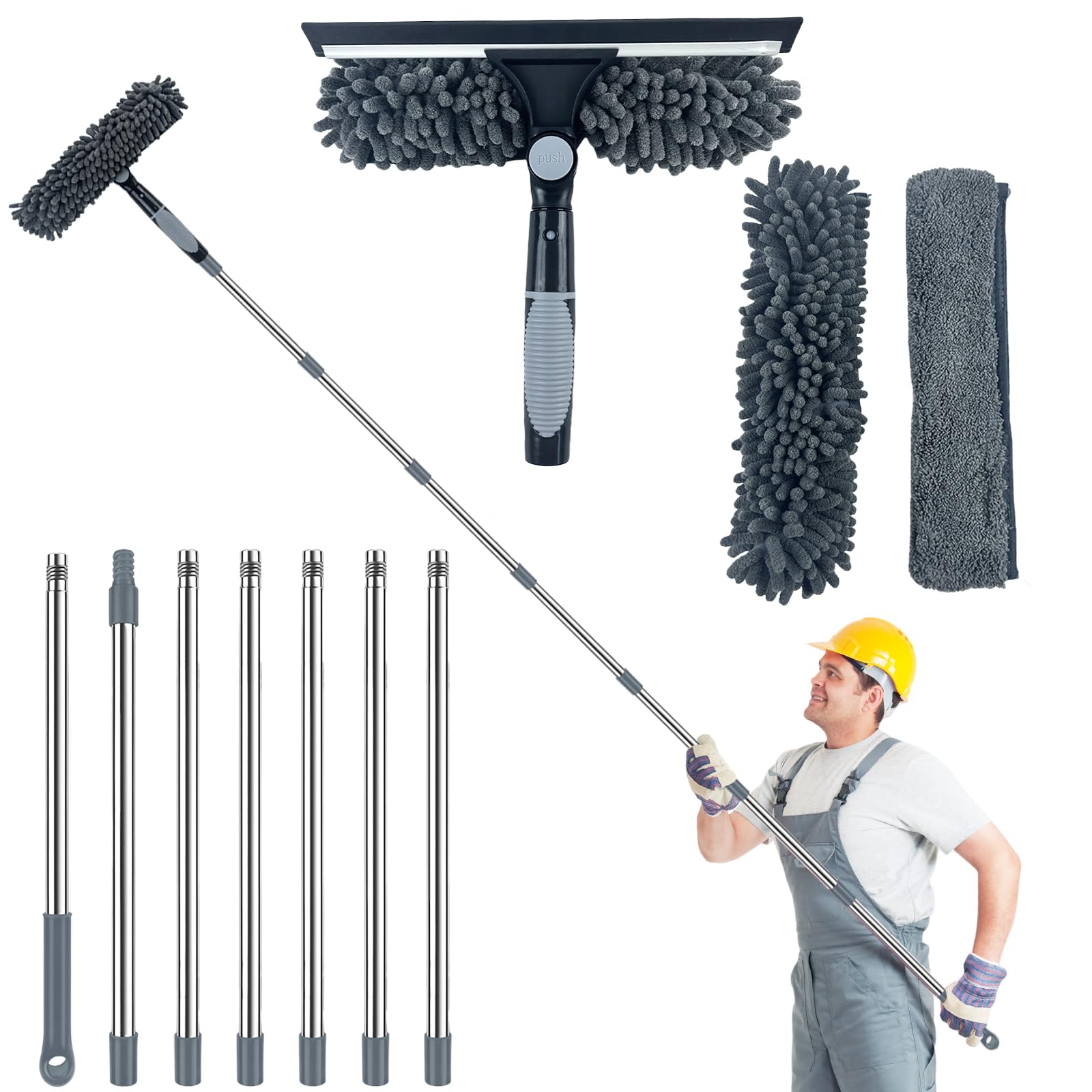 LSPYYDS ガラスワイパー 伸縮柄 クリーニングツール 長さ1.4~12.5m 外壁 ガラス ブラシ 高い ところ の 窓 拭き 伸びる ロングモップ 大掃除セット クリーニングツールワイパー マルチセクション伸縮ロッド 操作しやすいと使用 多目的 ガラスクリーニングツール 浴室/窓/天井/鏡/壁など掃除用 (セットA、1.4M)