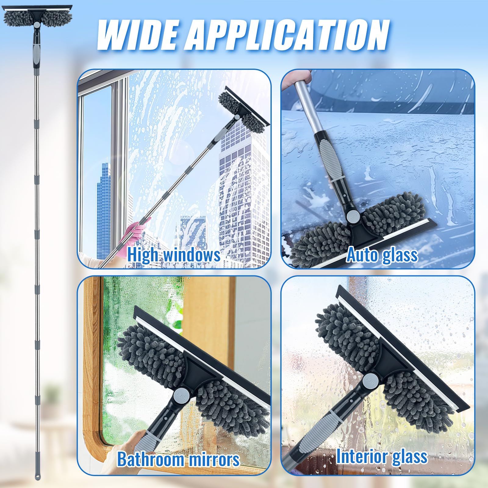 LSPYYDS 外壁 ガラス ブラシ ガラスワイパー 伸縮柄 長さ1.4~12.5M大掃除セット 窓拭き 伸びる ロングモップ クリーニングツールワイパー マルチセクション伸縮ロッド 操作が簡単 多目的 ガラスクリーニングツール 浴室/窓/天井/鏡/壁など掃除用 9.5M