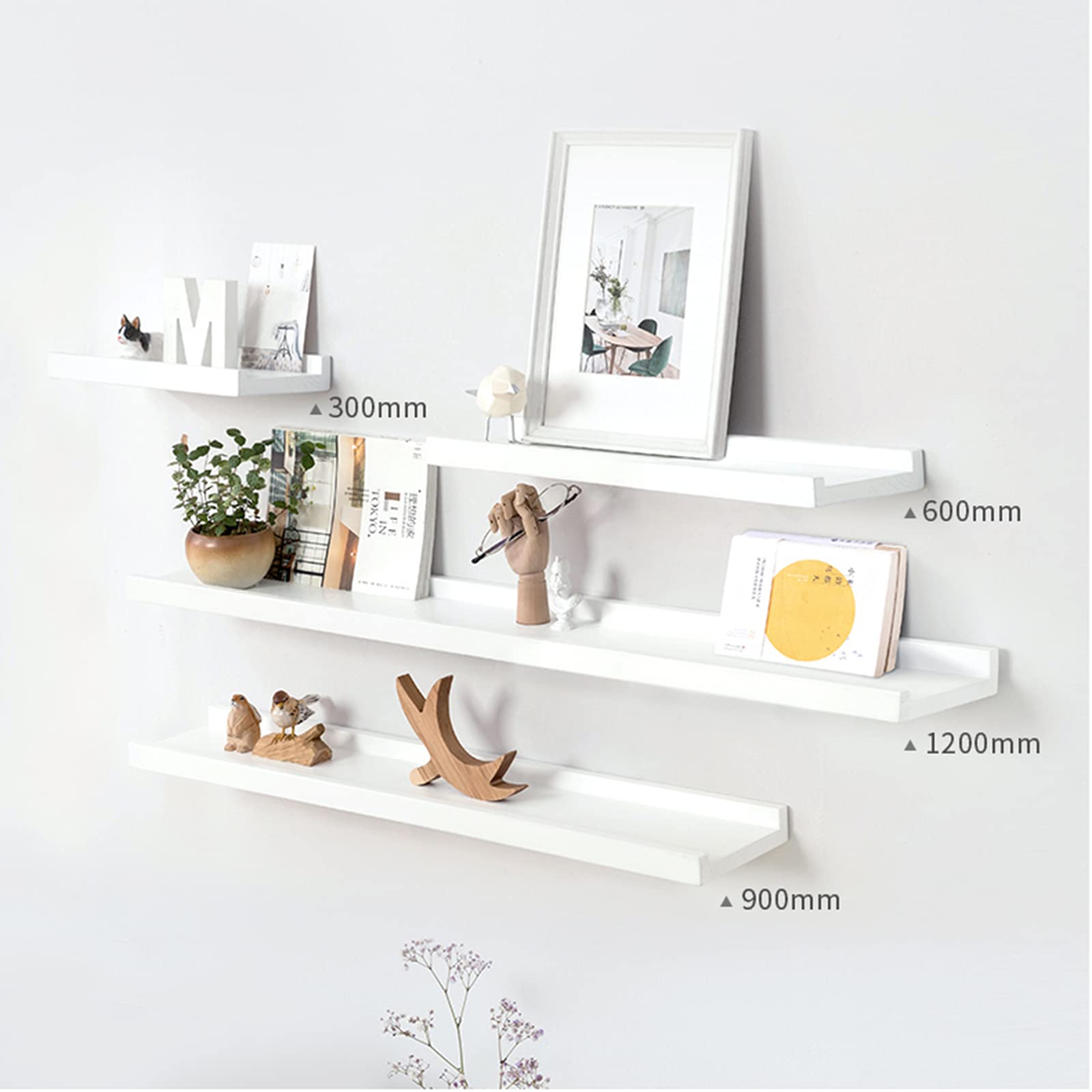 myoseya ウォールシェルフ 木製壁棚 壁付け棚 壁かけ棚 壁収納 壁につけ棚 おしゃれ 簡単組立 壁掛けシェルフ 壁に付けられる棚 レトロ インテリア DIY 収納家具 01_ホワイトxオーク材 300*150*40mm