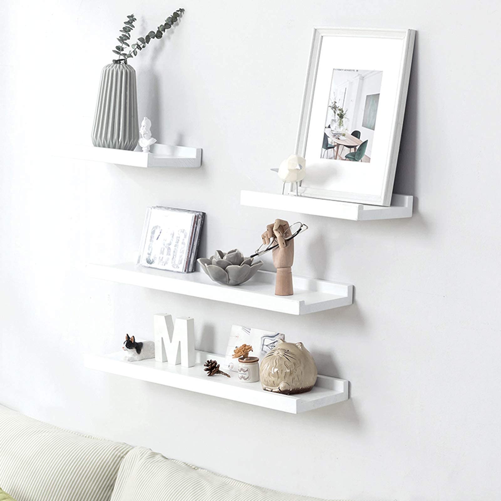 ウォールシェルフ 天然木 壁掛け棚 壁 棚 ウォールラック おしゃれ 木製 飾り棚 壁掛けラック 落下防止のガード付きで安心 洗面所/キッチン/トイレ/寝室 壁面収納 タオル掛け付き 取り付け簡単 石膏ボード対応 幅40cm(ホワイト)