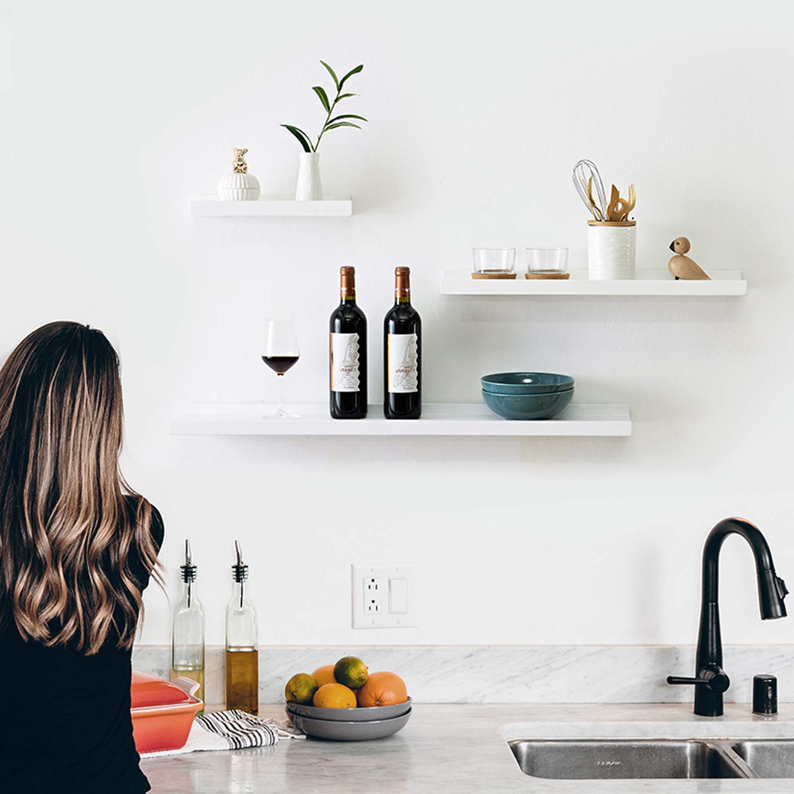 SIUSA ウォールシェルフ 壁掛け棚 3個セット 壁 棚 ラック おしゃれ 木製 取り付け簡単 日本語取扱説明書付き 黒