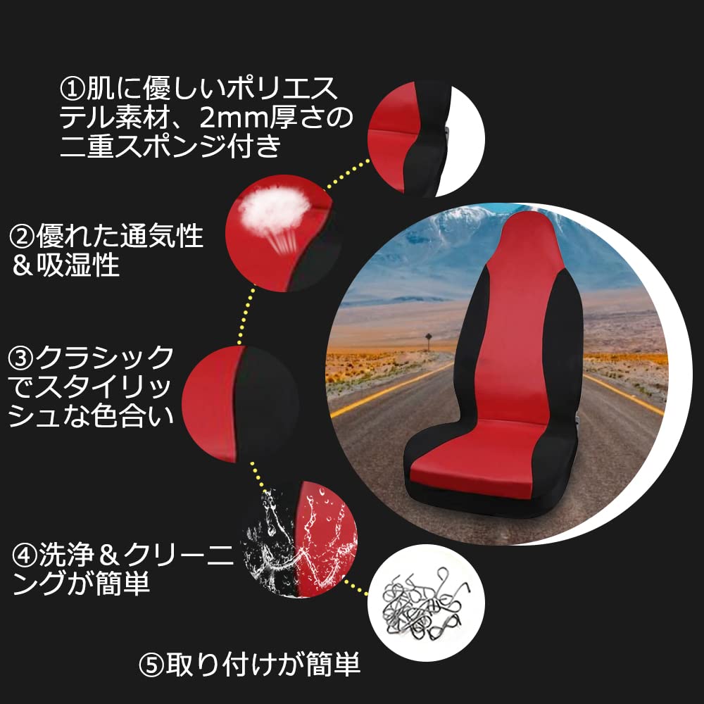 myoseya シートカバー 汎用 カーシートカバー 車シートカバー レトロ 上品 おしゃれ バケットシート 前席 自動車 乗用車 車用 カー用品 02_レッド 2個