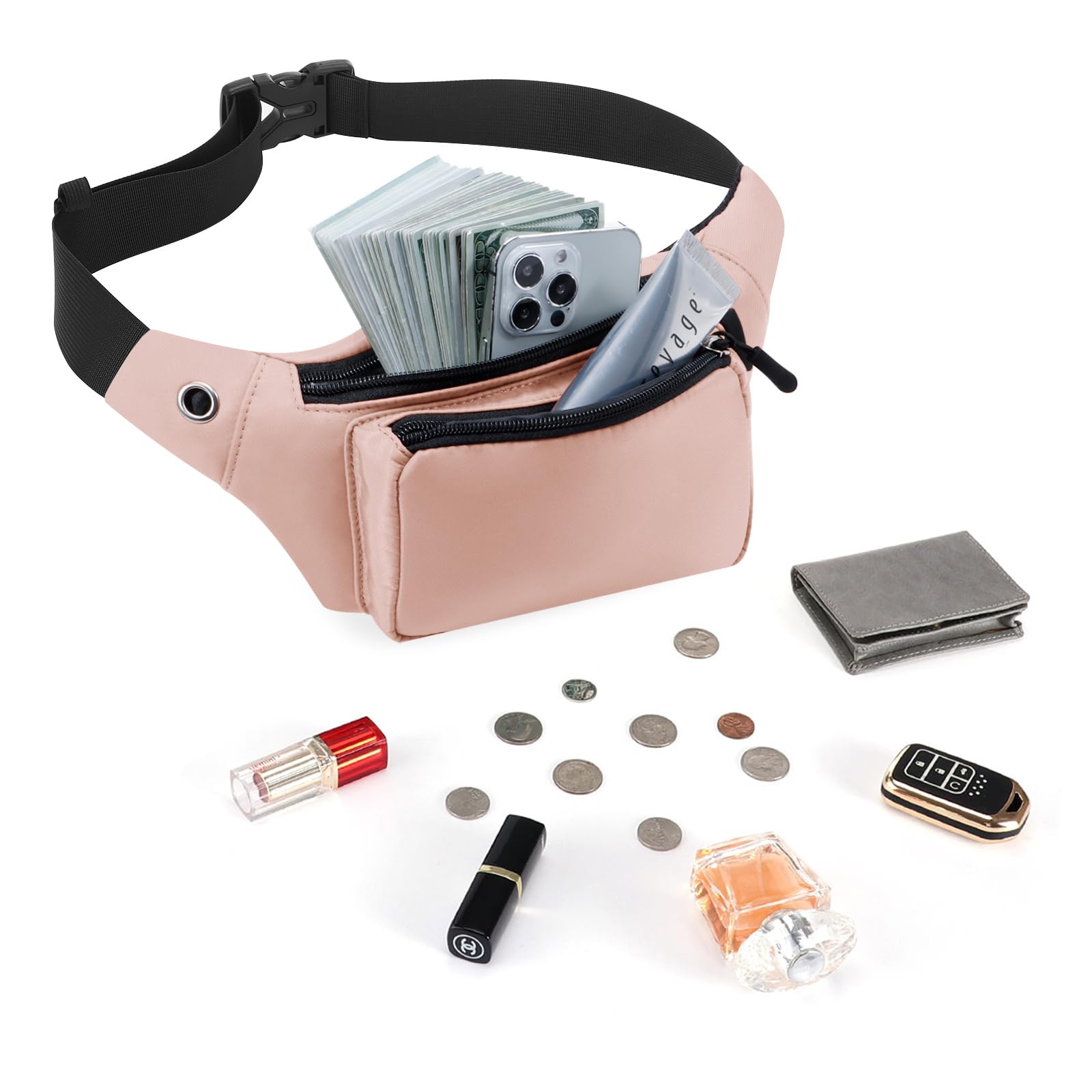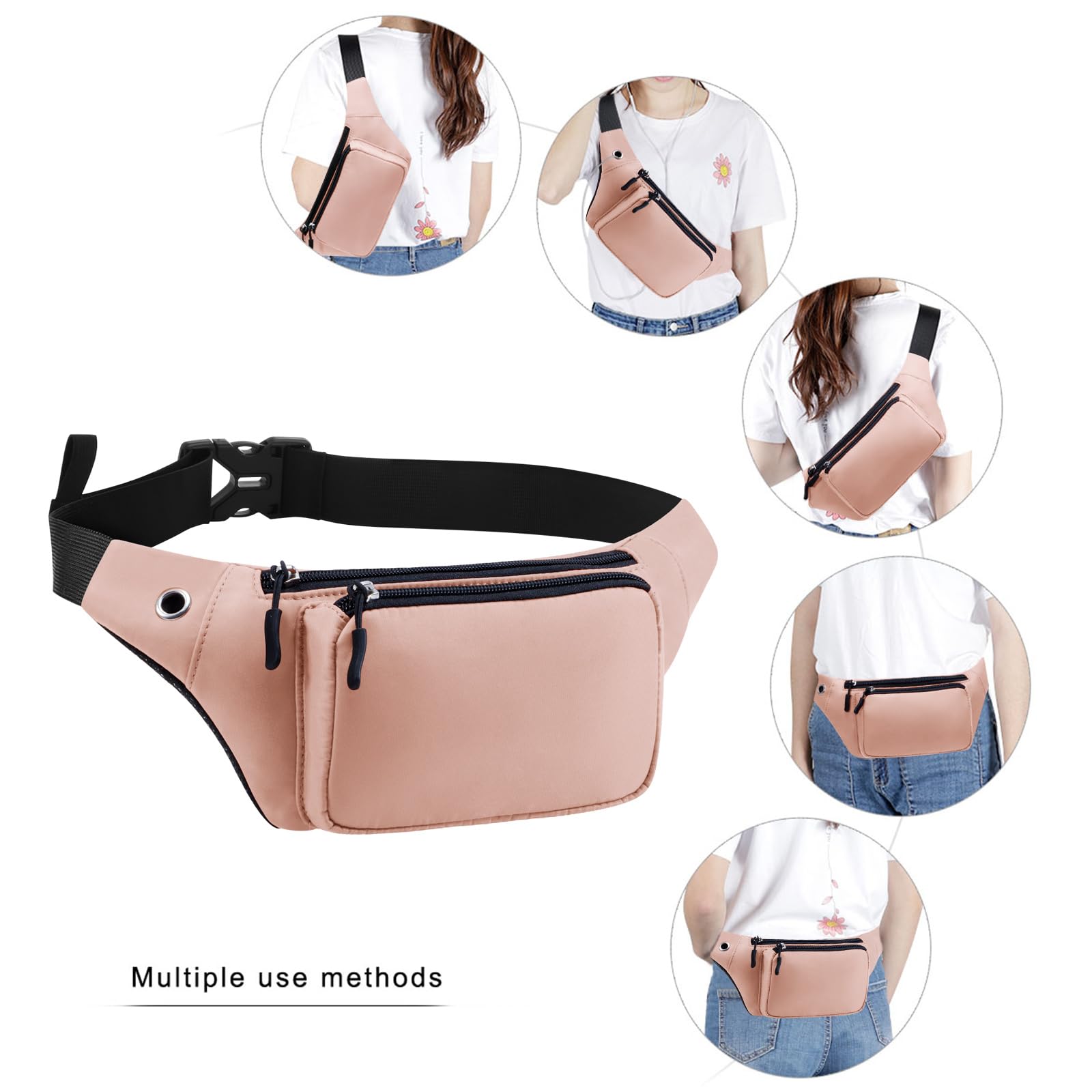 HAWEE ウエストポーチ メンズ レディース おしゃれ ウエストバッグ ショルダーバッグ 2way 防水 ポリエステル 旅行 仕事 登山 ウォーキング ランニング (ピンク)