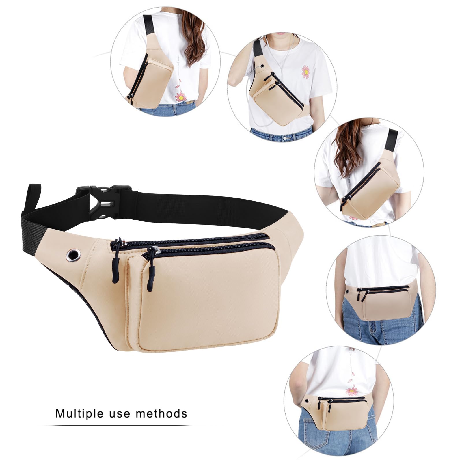 HAWEE ウエストポーチ メンズ レディース おしゃれ ウエストバッグ ショルダーバッグ 2way 防水 ポリエステル 旅行 仕事 登山 ウォーキング ランニング (アプリコット)