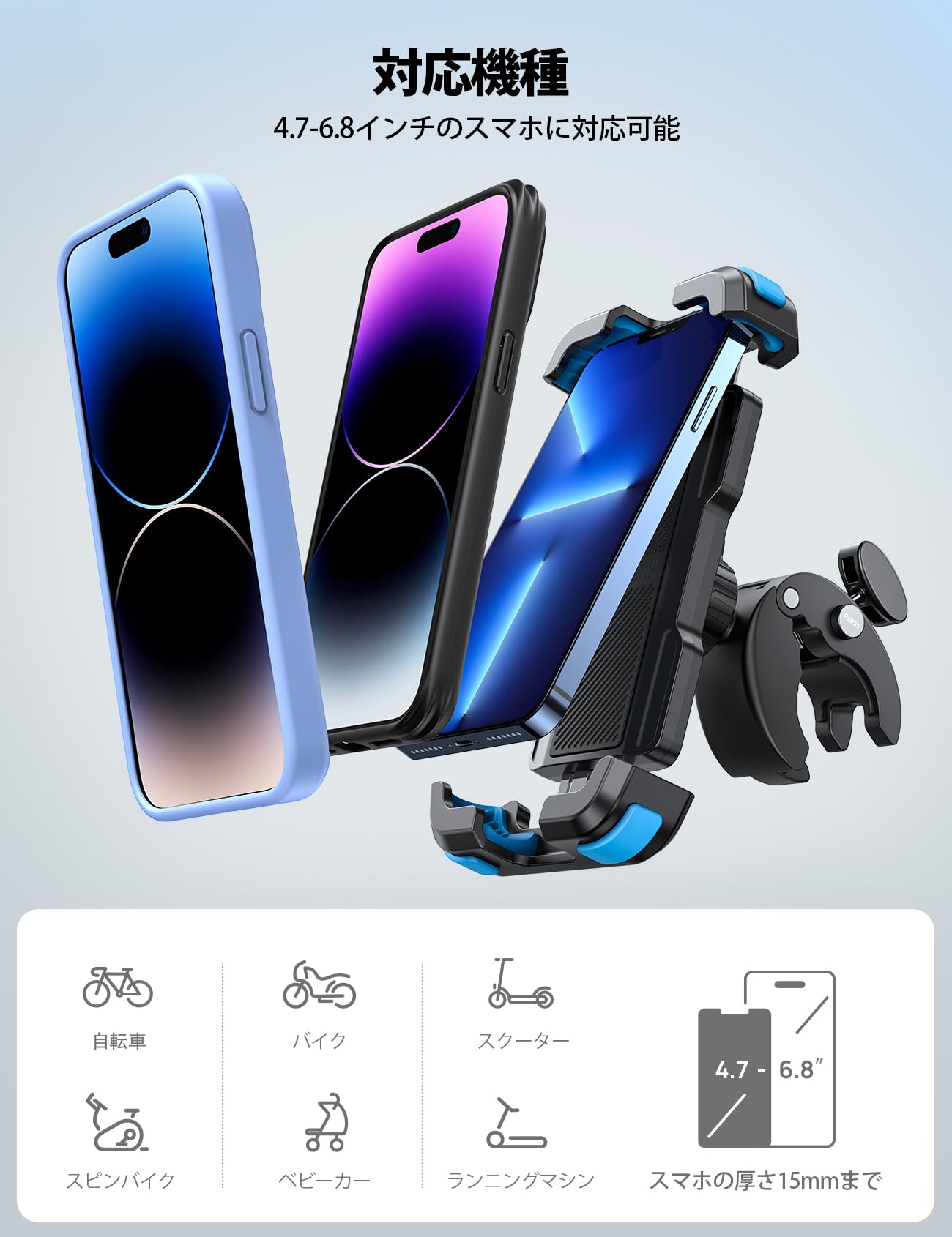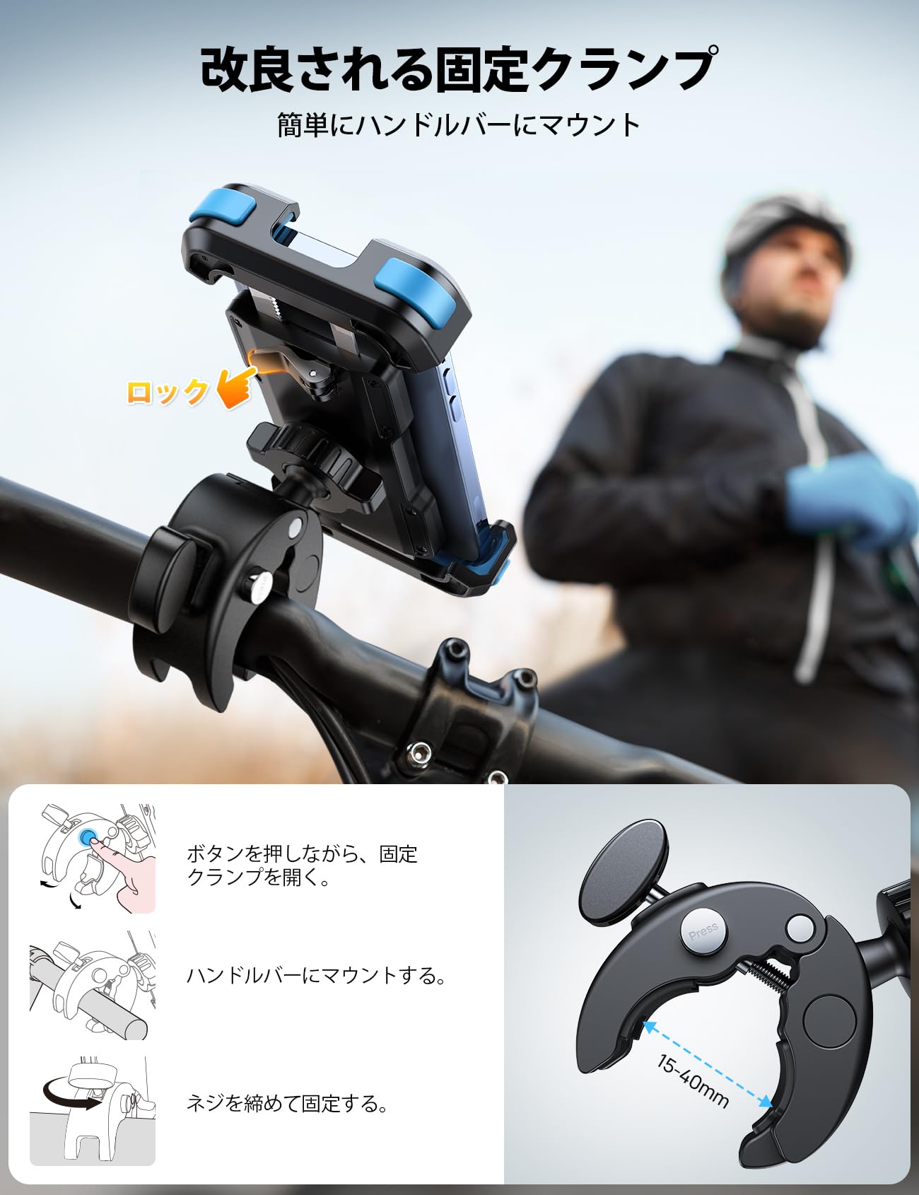 Lamicall 片手操作 自転車用 スマホ ホルダー スタンド : 簡単取付 ロードバイク ワンタッチ スマートフォン ホルダー 携帯ホルダー オートバイ バイク用 スマホ固定 360度回転 防振 iPhone 17 17pro Air iPhone16 16Plus 16pro 15/14/13 android 4.7-6.8インチに対応 黒