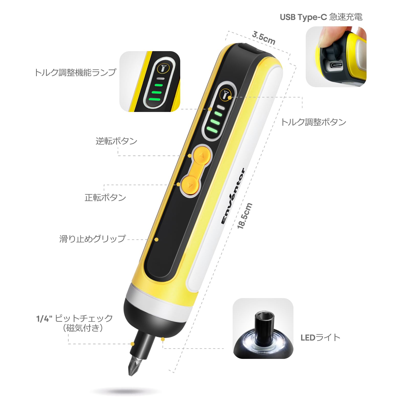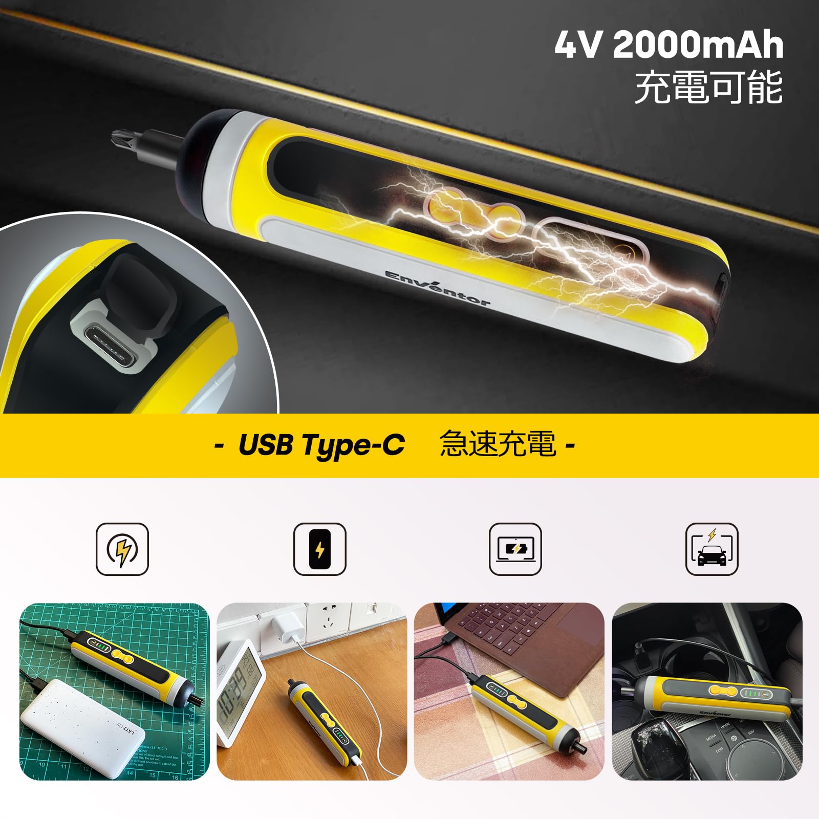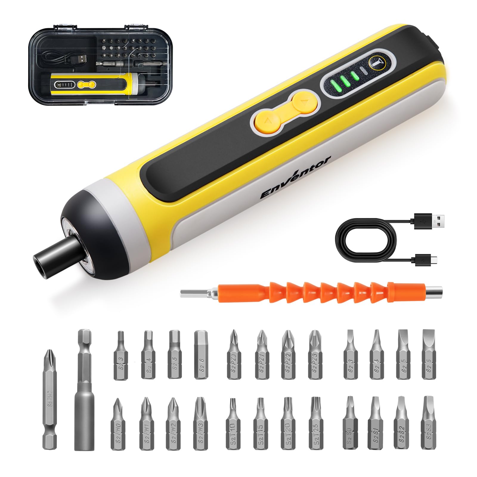 Enventor 電動ドライバー 小型 4V ミニ コードレス 27本ビット キット ポータブル LED作業灯 正逆転切 調整ギア USB充電式 小型電動 ドライバー家庭用 家具組み立て 自宅のメンテナンス・装飾・手動操作 収納ケース付き 軽量 女性 初心者対応 軽作業