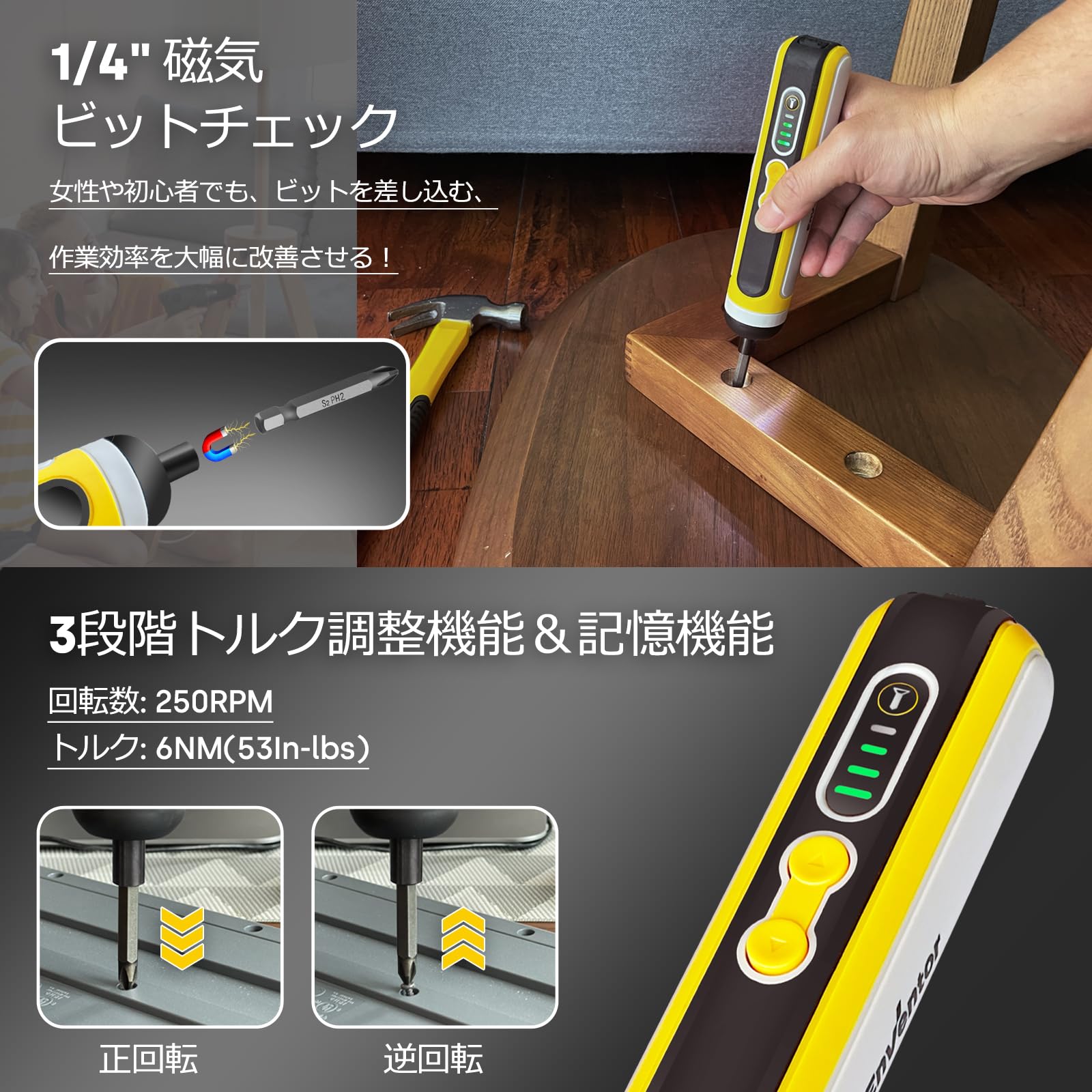 電動ドライバー 小型 iFu 充電式 正逆転切替 電動ドライバ トルク調整/29磁気ビット/高輝度LEDライト/手動兼用 家具の組み立て DIY