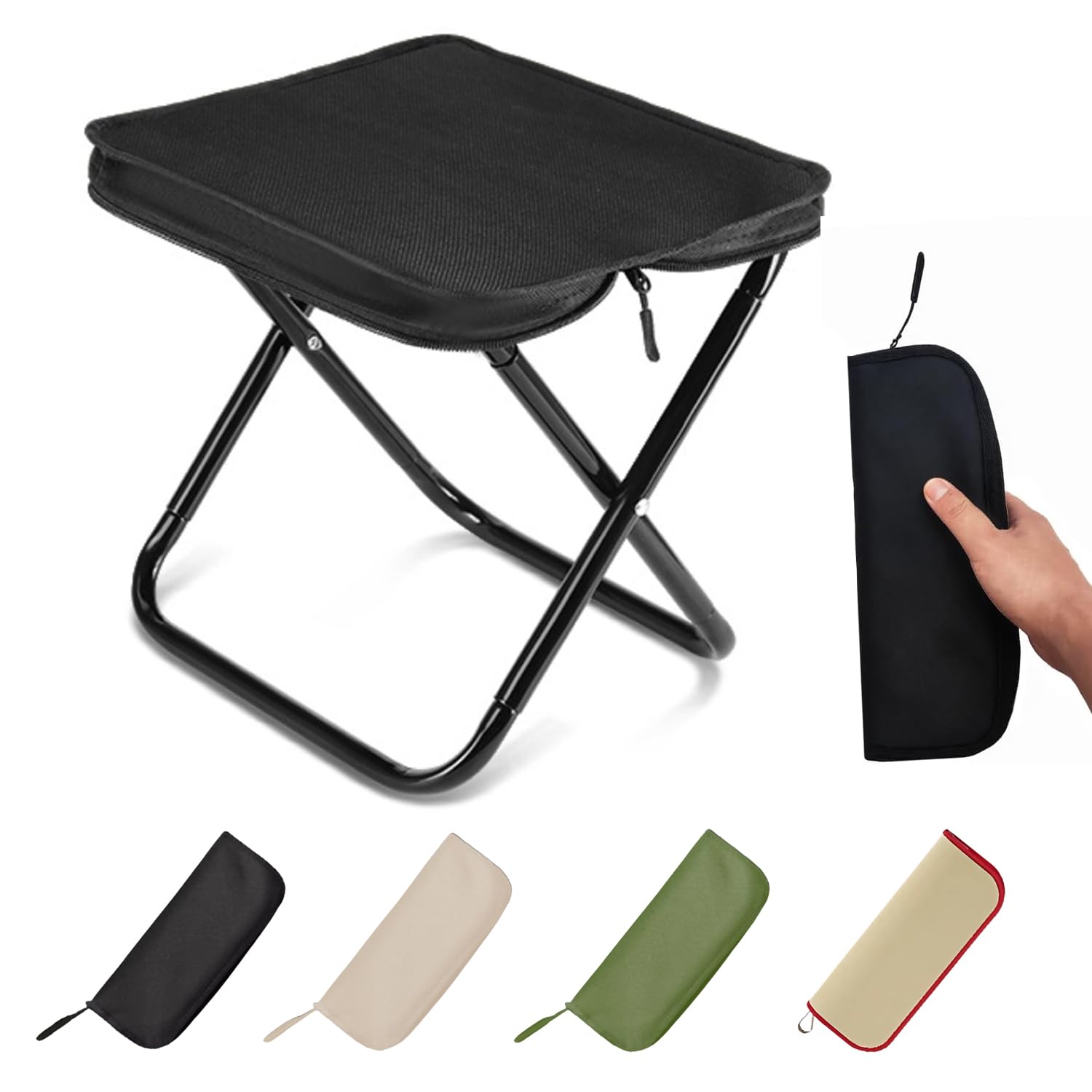 BIKYO 折りたたみ椅子 アウトドアチェア 伸縮式 キャンプ椅子 折り畳み式 キャンプスツール 軽量 コンパクト 持ち運び便利 耐荷重220KG 一秒開閉でき 高さ調整可能 6.5-45CM 滑り止め シートクッション 収納バッグ付き (ブラック+角型 + シートクッション)