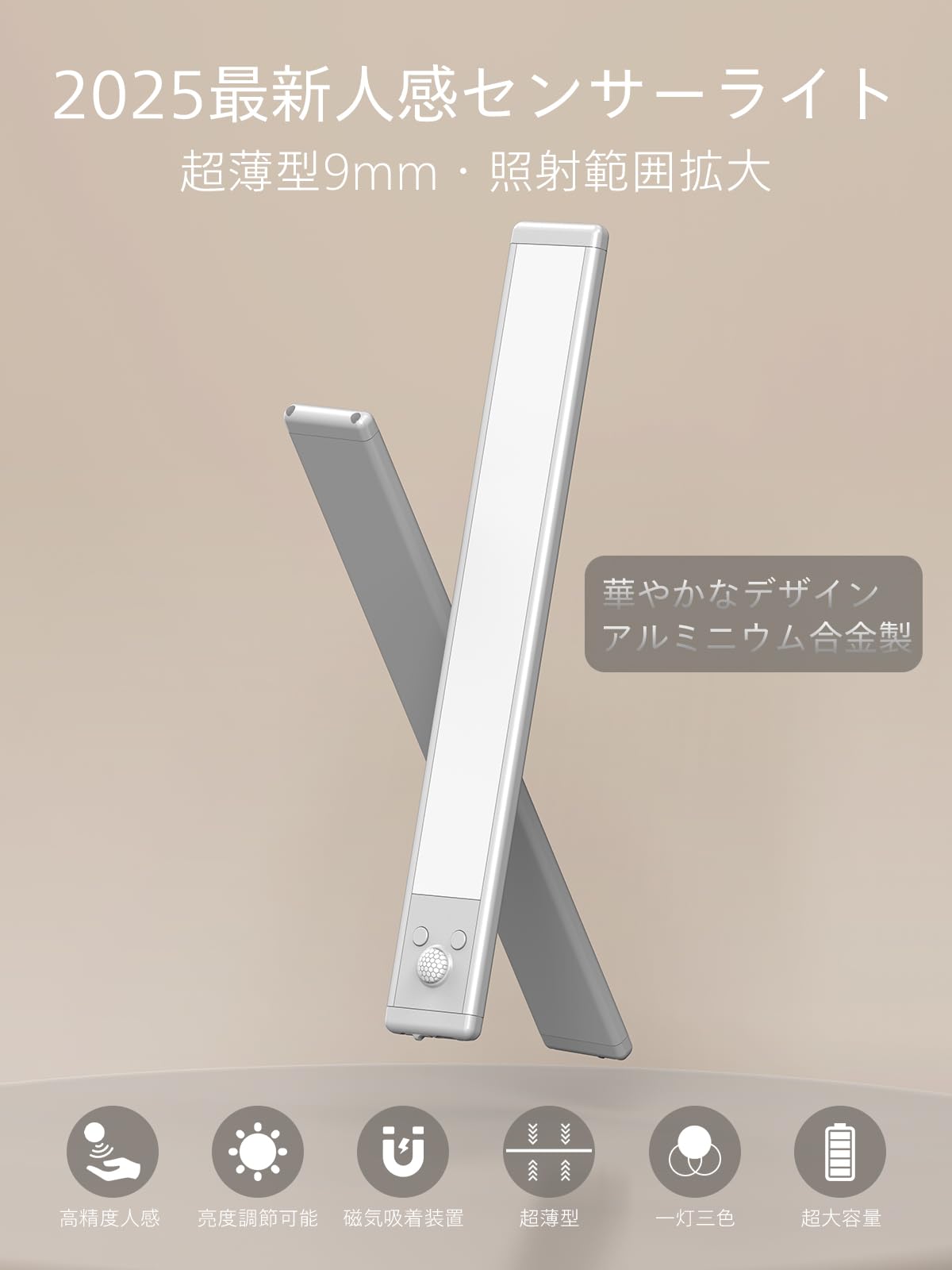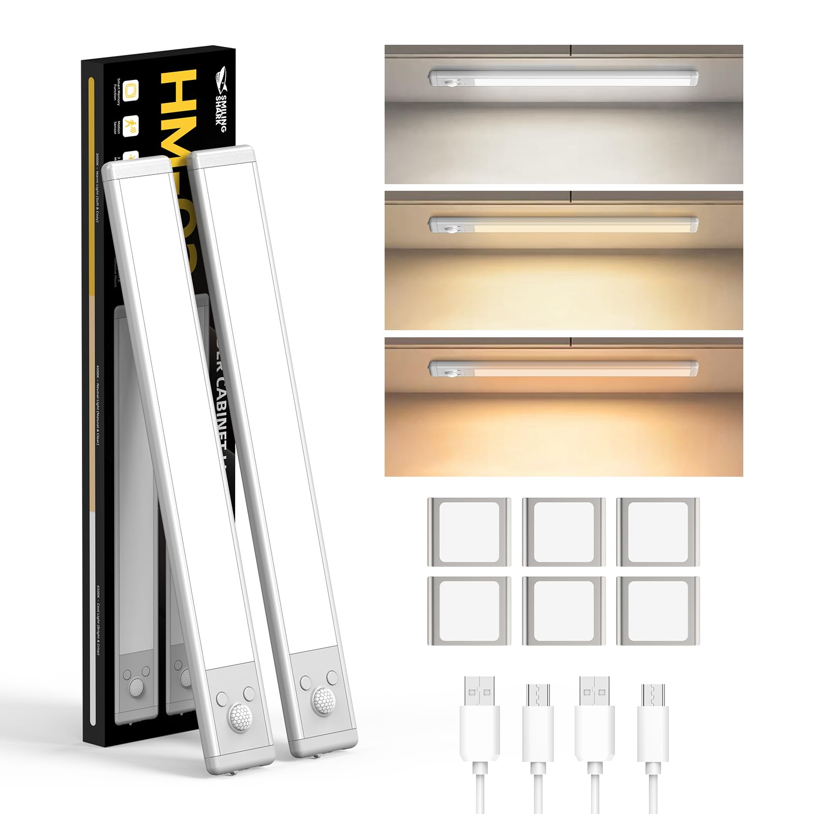 Smiling Shark 人感センサーライト HM02【2025最新・高感度センサー・超薄型設計】高輝度 キッチンライト 室内LED バーライト 30CM 超薄0.9cm アルミ製 暖・白・自然光 無階段・三段階調節 充電式 2000mAh 10時間連続使用 磁気吸着&粘着式 工事不要 記憶機能 手元灯 足元灯 玄関灯 多場面適用 寝室/玄関/階段/廊下/戸棚 日本語取扱説明書 2個入