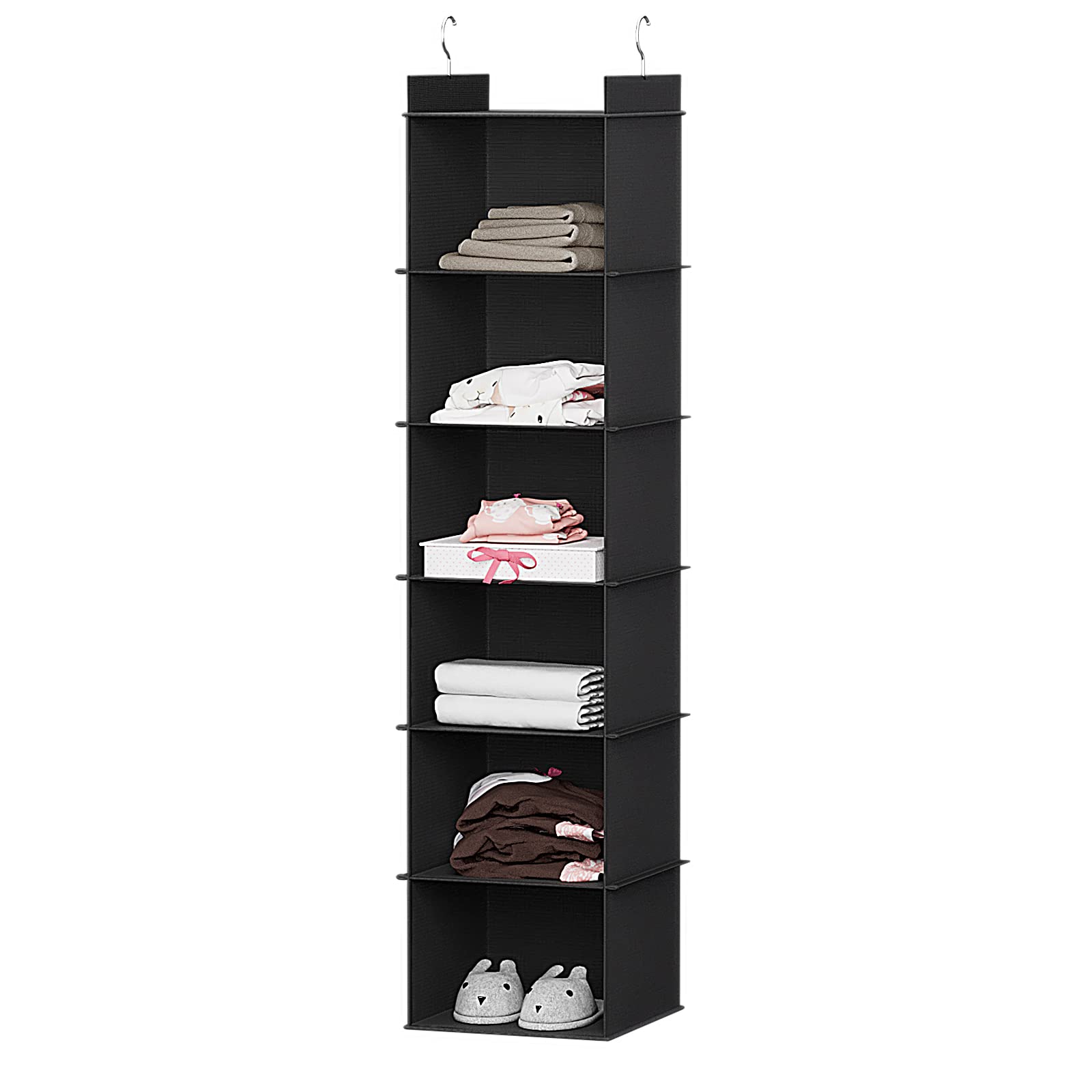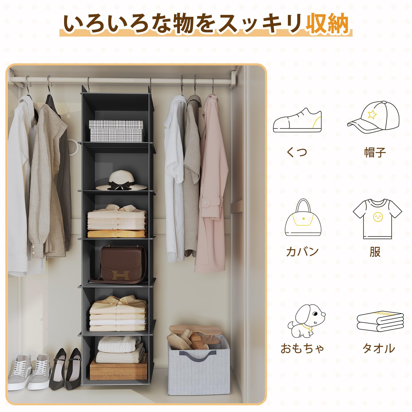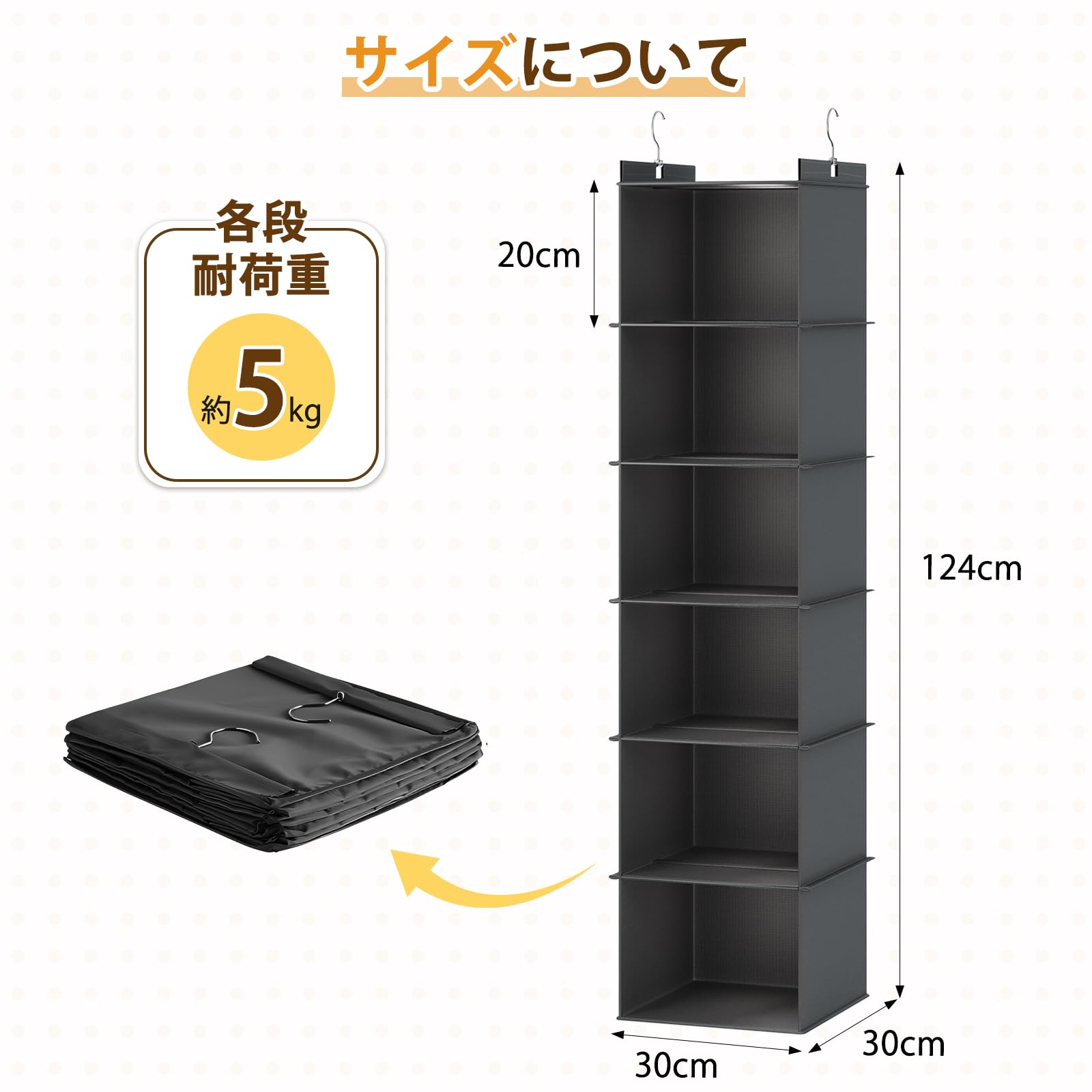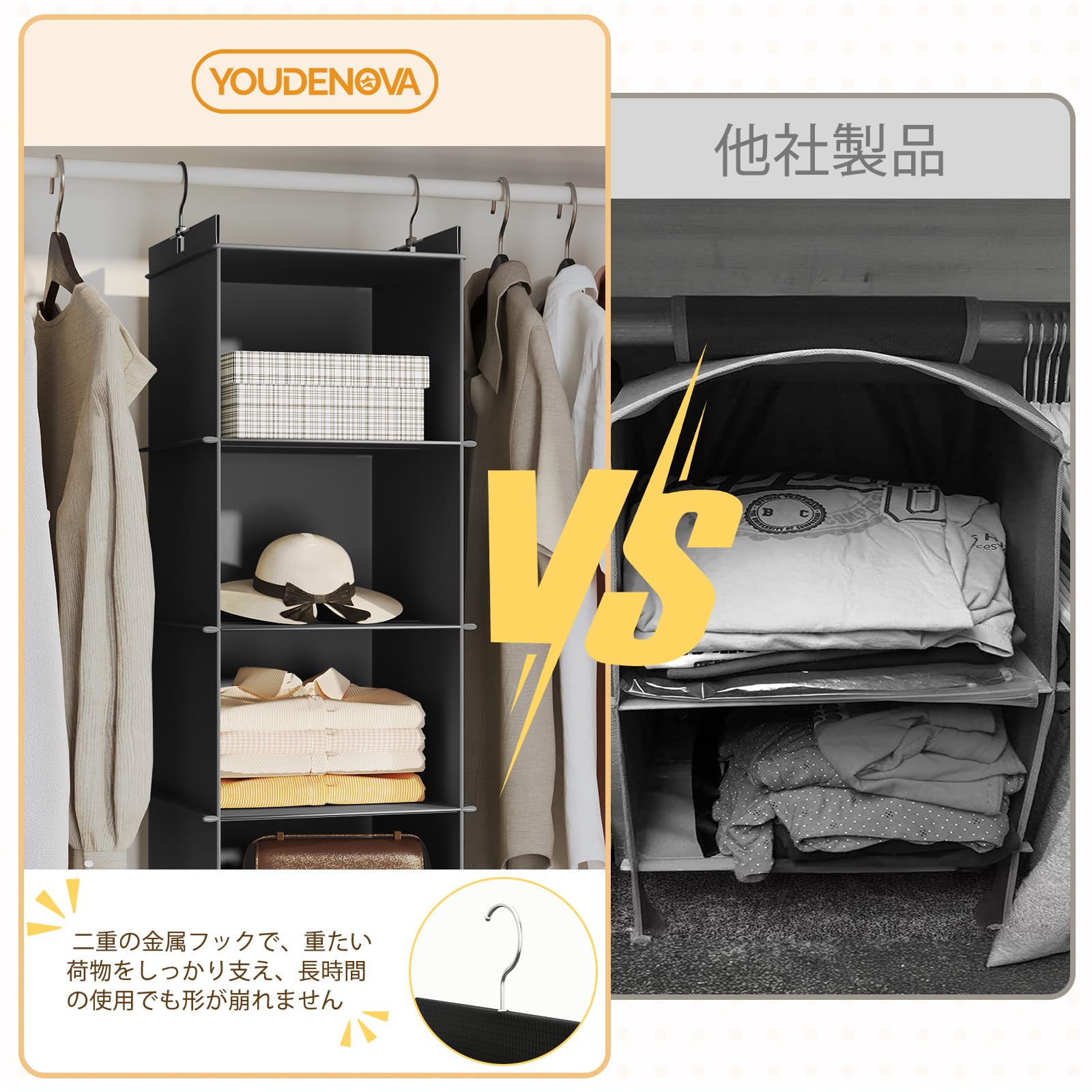 YOUDENOVA 吊り下げ収納 衣類ラック 収納 クローゼット 折りたたみ 旅行 便利グッズ 水洗い可能 防湿防カビ 洋服収納 衣類収納 帽子収納 (ブラック、6段)