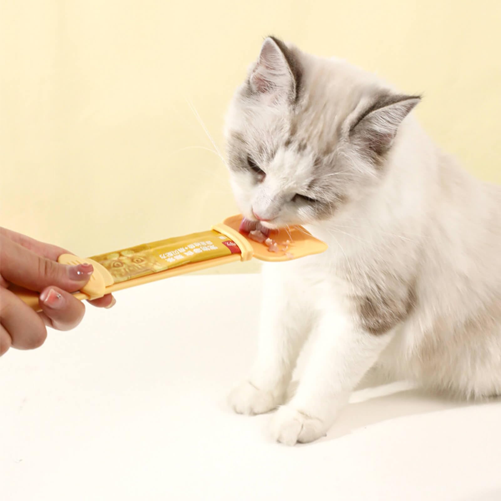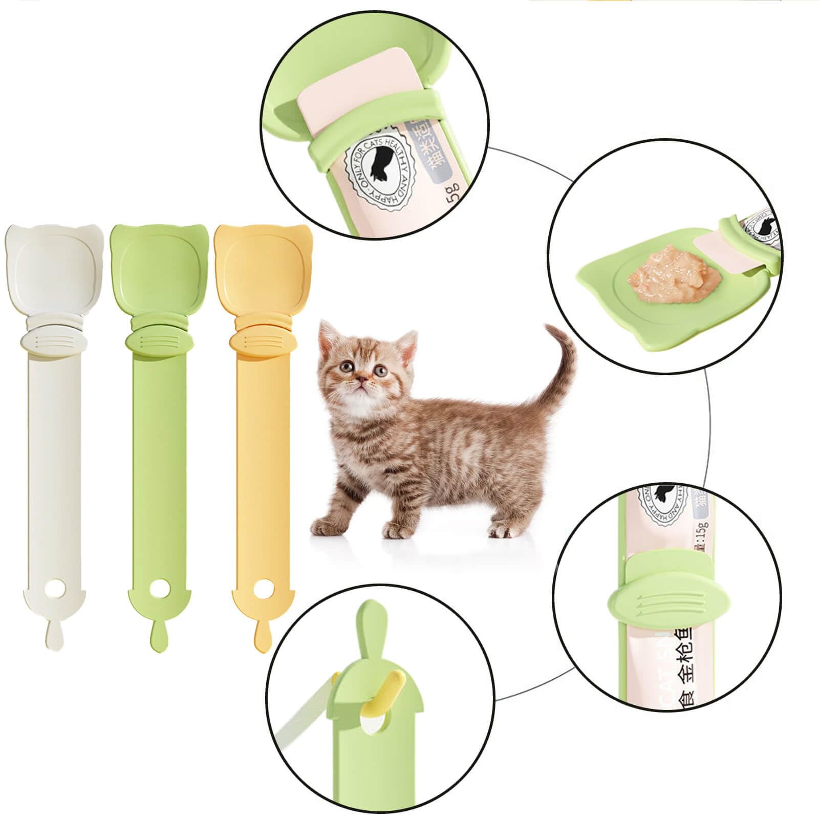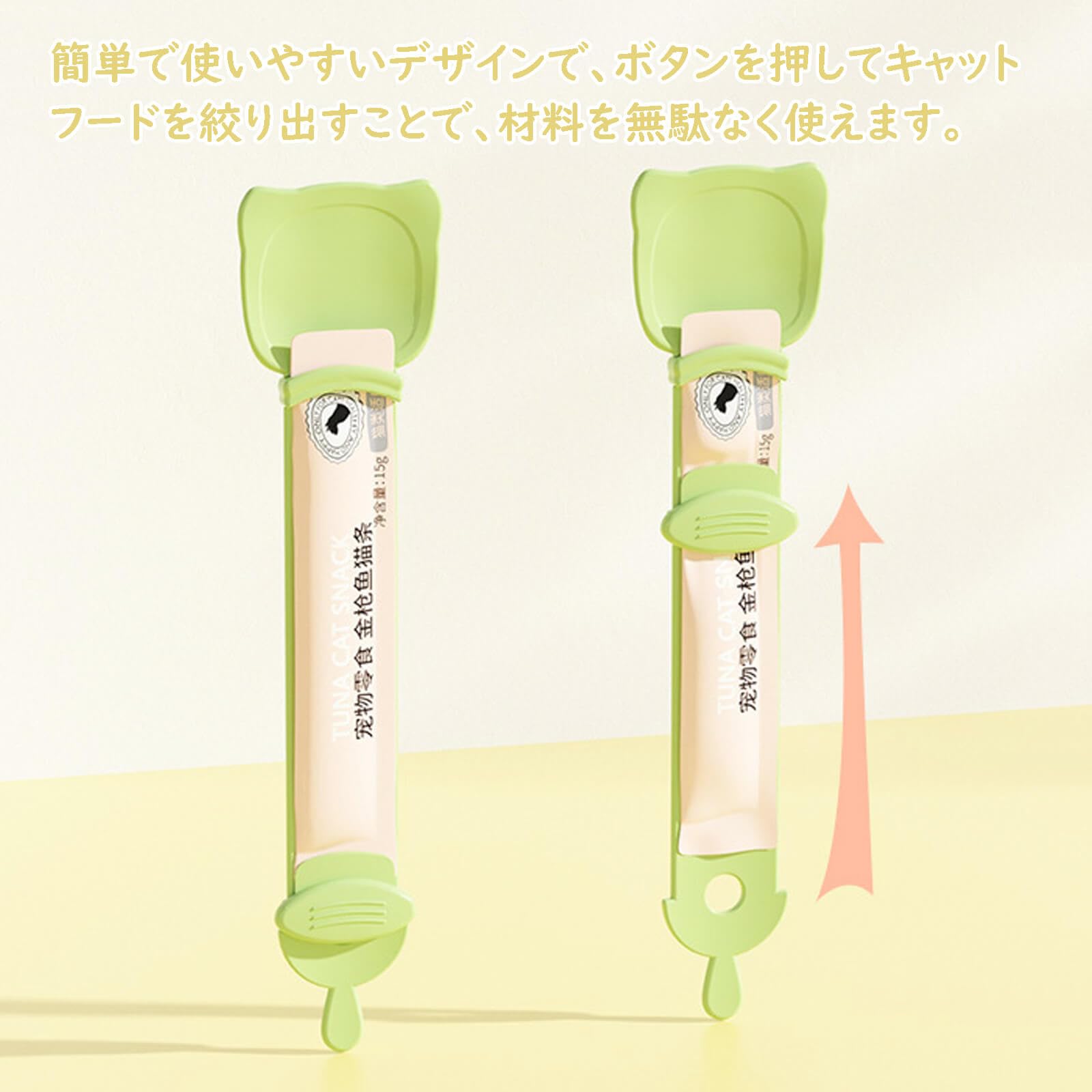 チュール スプーン 猫用 給餌器 3個セット 3色 片手で操作可能 おやつ押出器 洗浄しやすい 持ち運びが簡単 猫のスプーン 全種類の猫適用 ペット用品 簡易給餌 凹型の収納溝 ホワイト+イエロー+グリーン