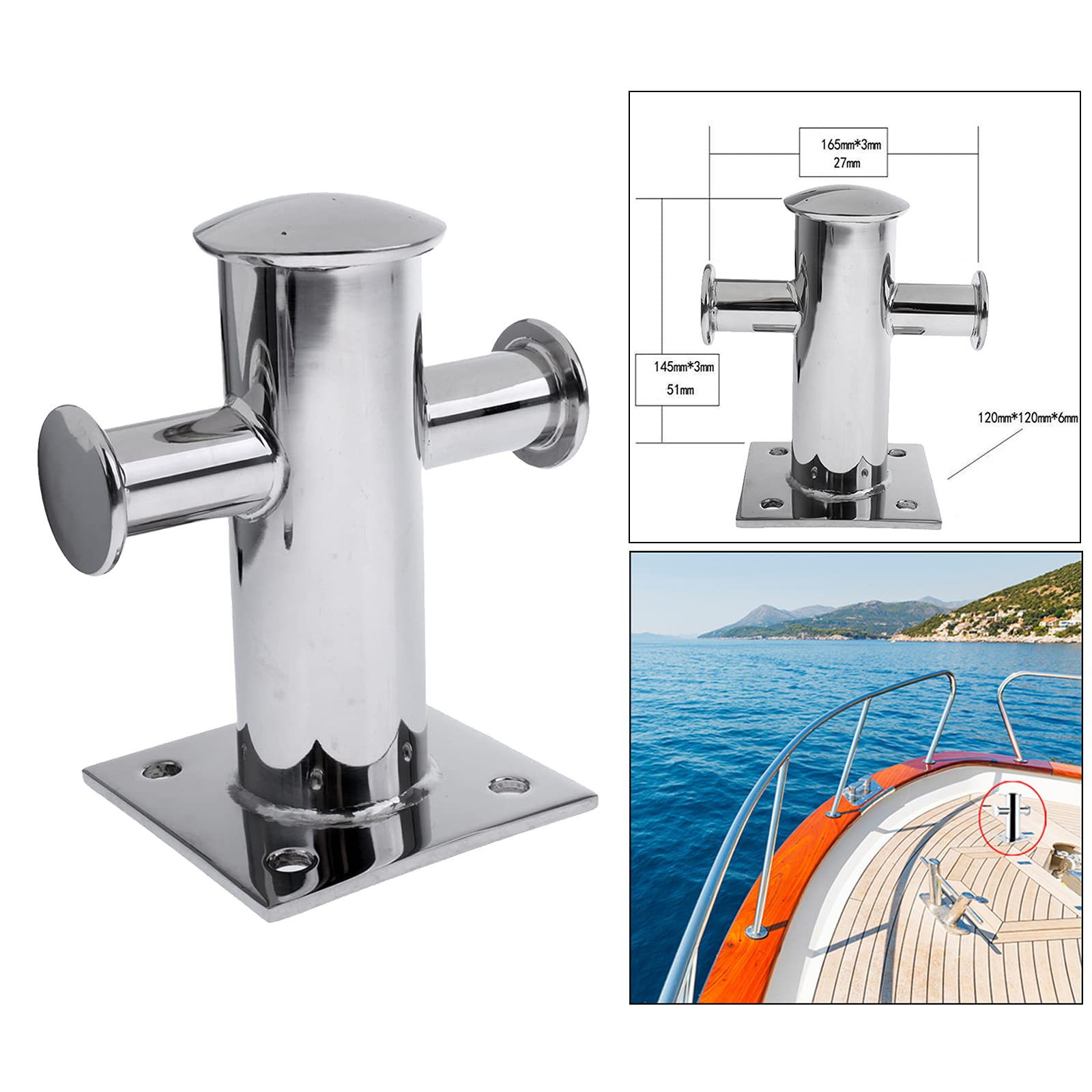 MERIGLARE ボート交換用の頑丈な 304 ステンレス鋼 係留 ボラード クリート マリンボラードクリート シングルクロスビットボラードボートハードウェアヘビーデューティー4穴船カヤックカヌー釣りボート用