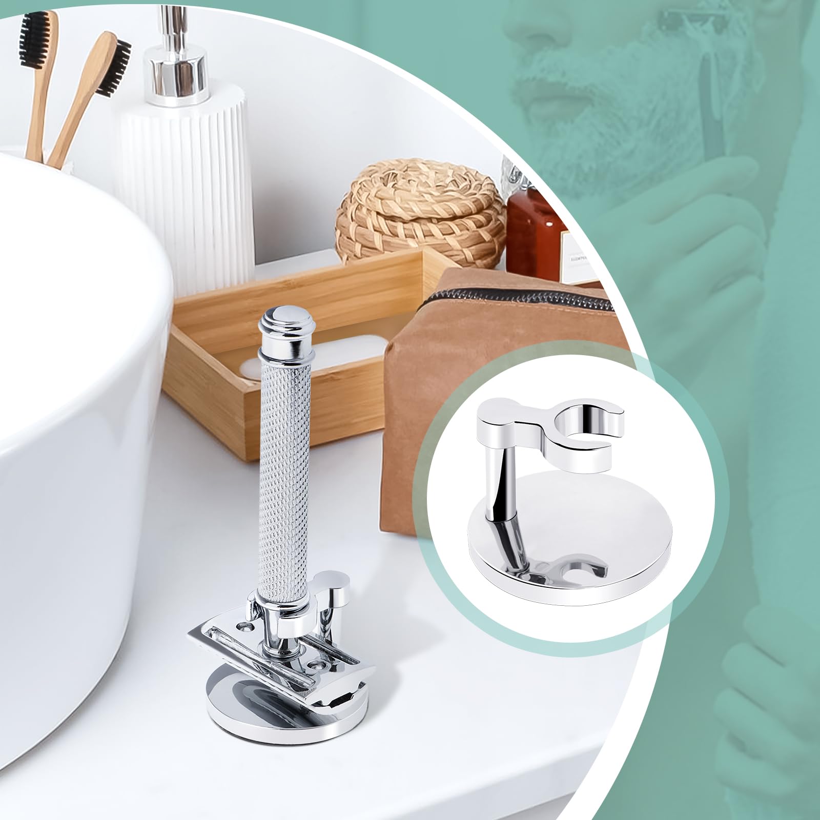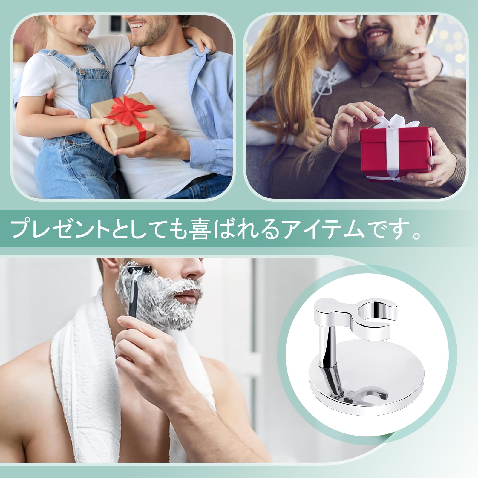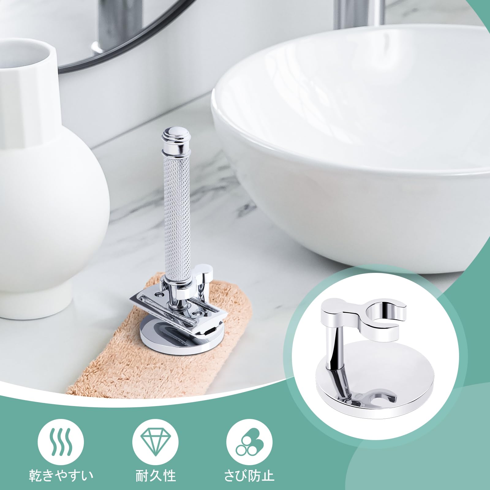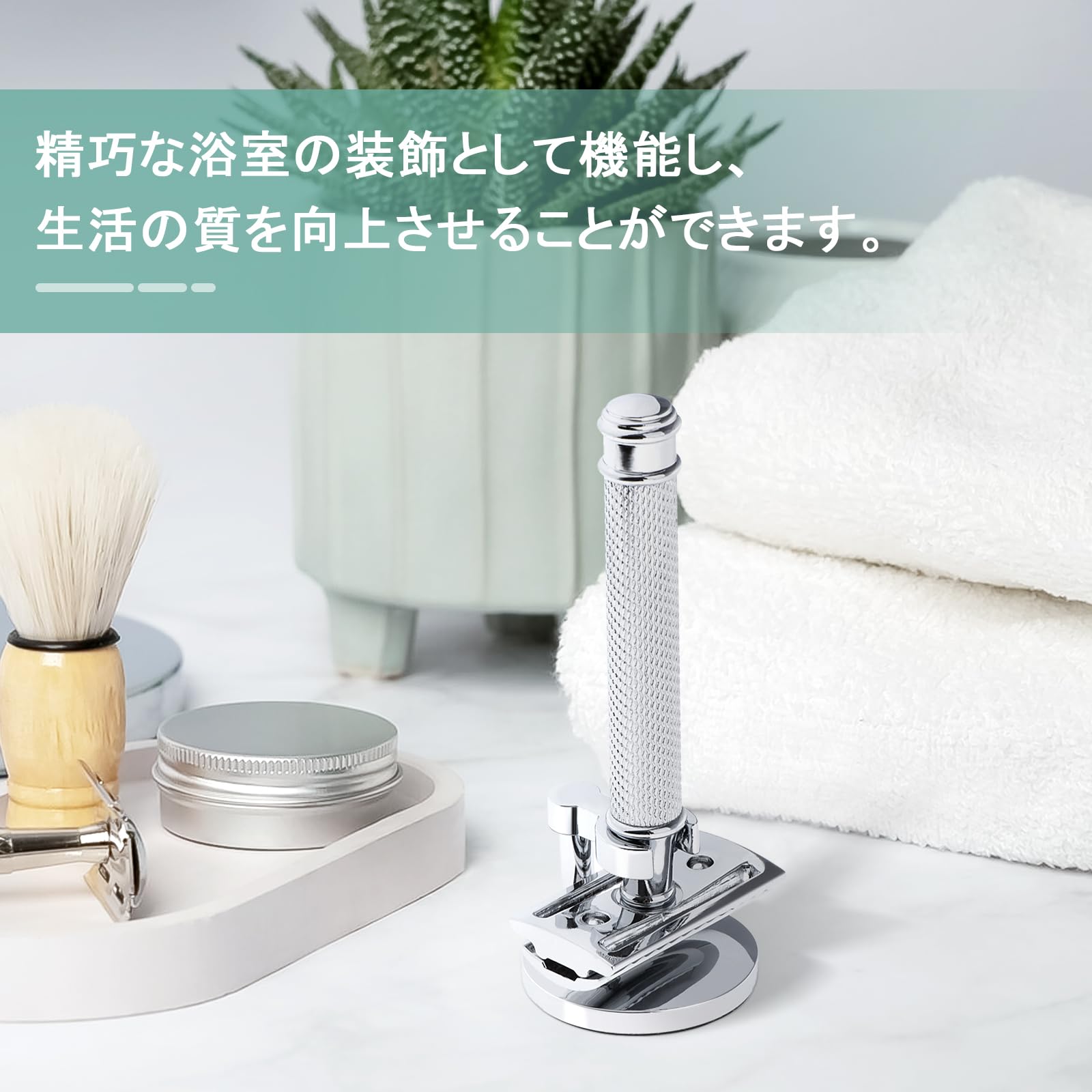 amleso シェービングスタンド カミソリスタンド カミソリ置き 安定したステンレス鋼 安全両刃シェービングシェーバースタンド 髭剃りホルダー メンズシェービングツール 浴室収納