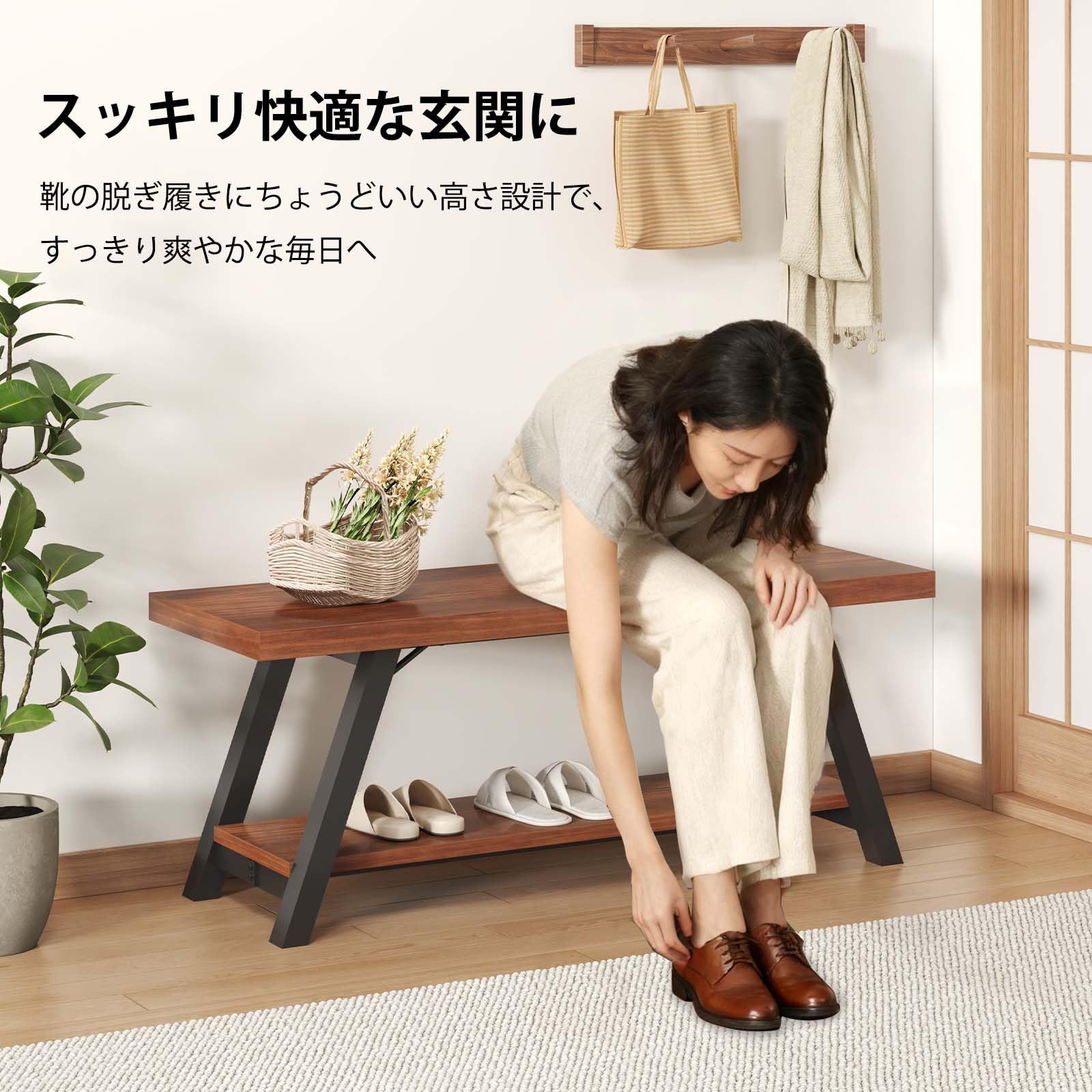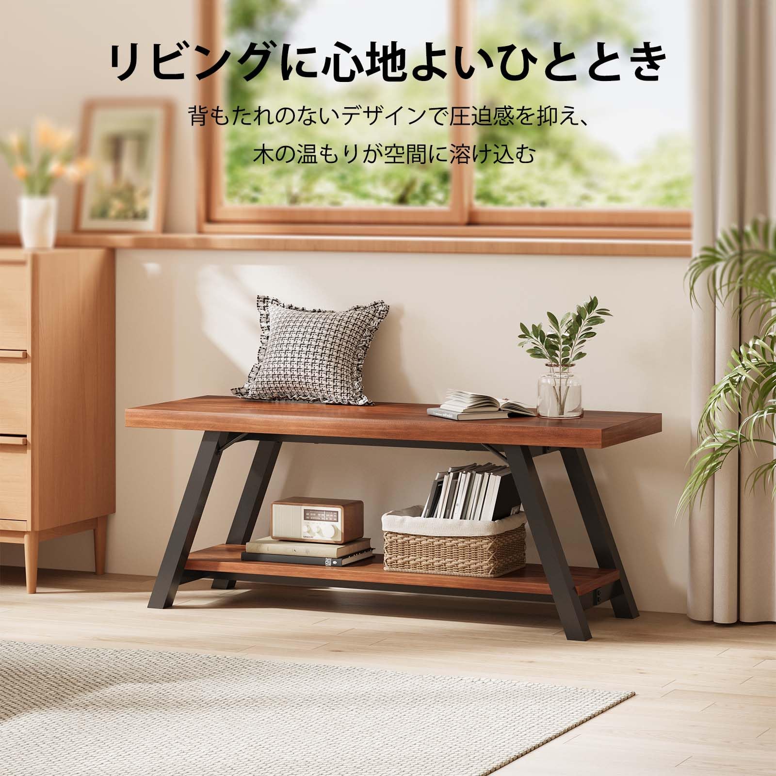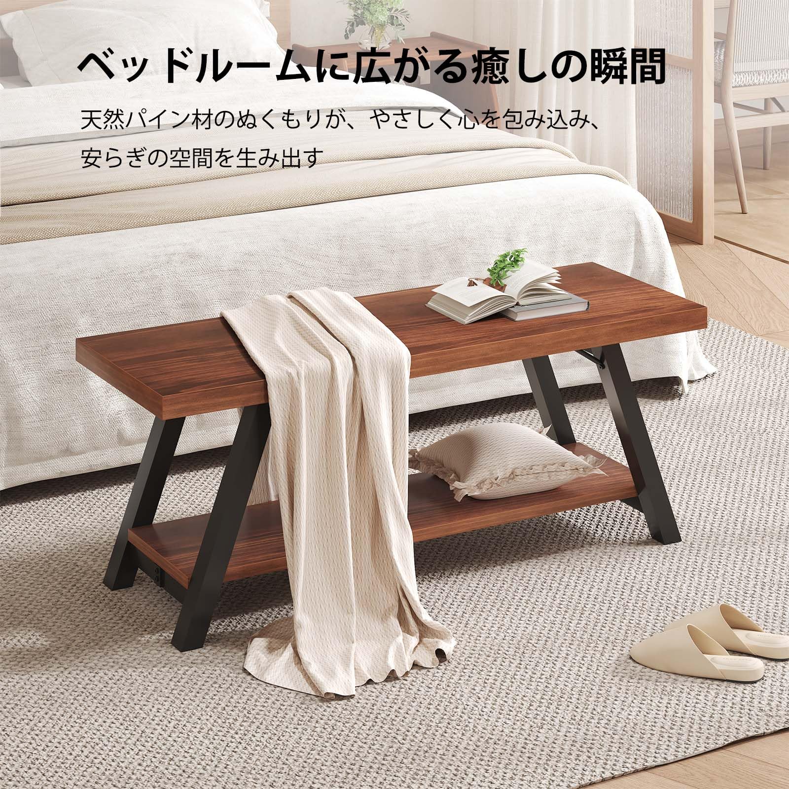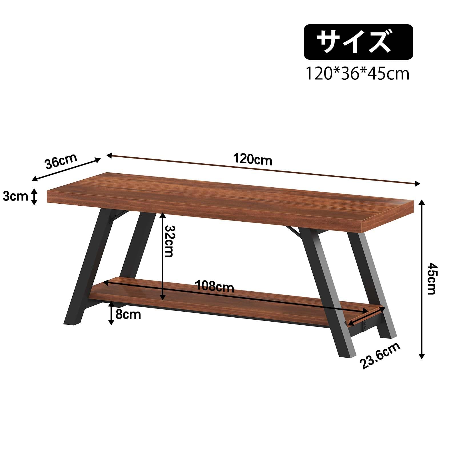 IBF 玄関ベンチ 幅120cm 収納付き シューズ収納 ダイニングベンチ リビング・寝室兼用 木製 パイン材 無垢材 × スチール脚 おしゃれ シンプル bench 長椅子 120×36×45cm 高さ45cm