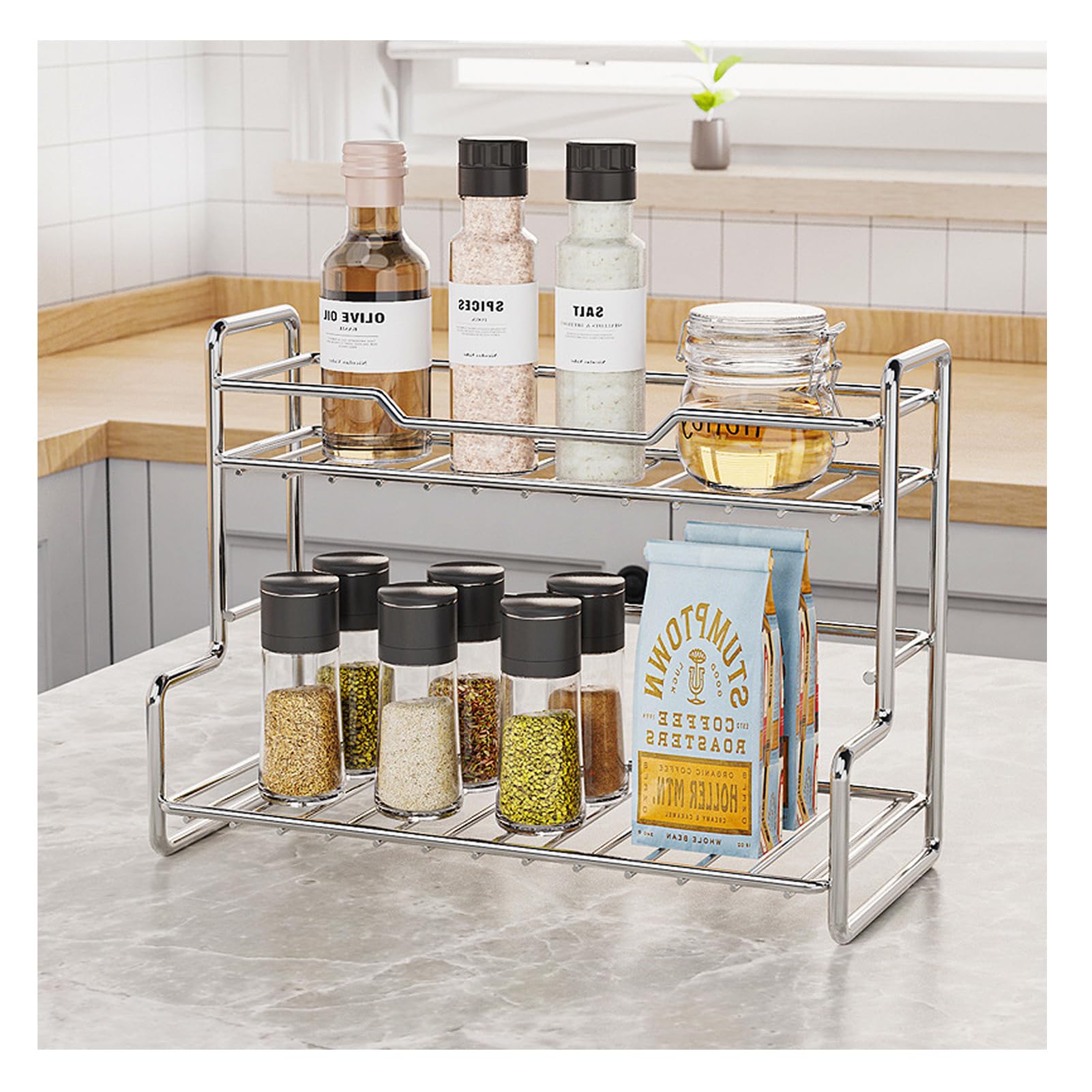 ELECTRO-WEIDEWORLD 調味料ラック ステンレス製 2段式 スパイスラック キッチンラック コンパクト 一人暮らし キッチン 収納 台所収納ラック 調味料棚 (銀色M(W27.5×D13×H20cm))