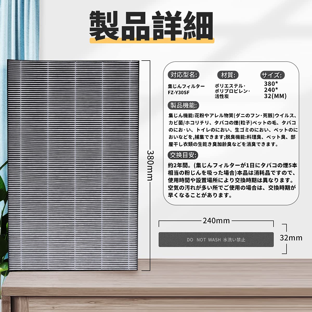 J&Q FZ-Y30SF 集じん・脱臭一体型フィルター 空気清浄機用交換フィルター 互換品(1枚)
