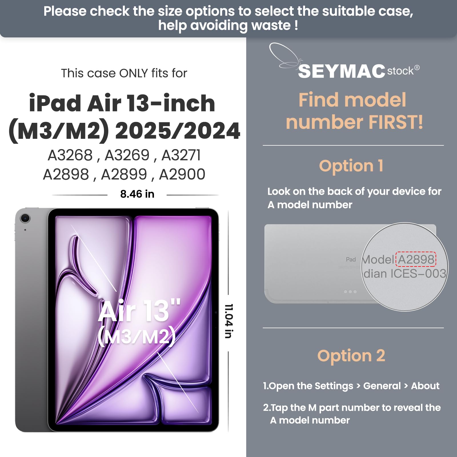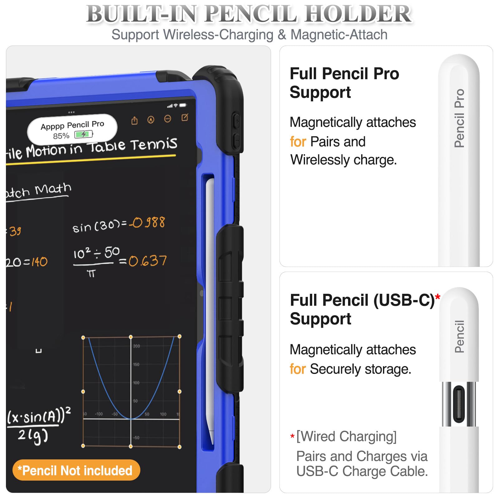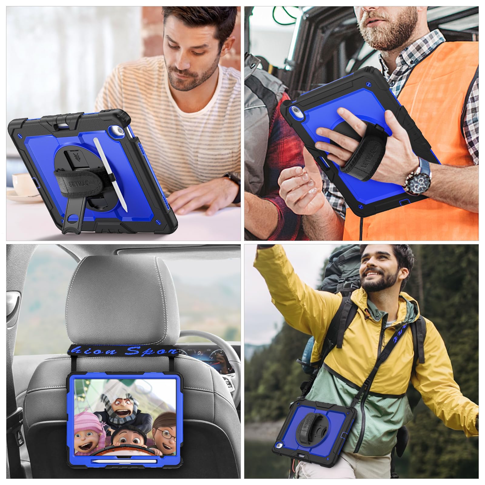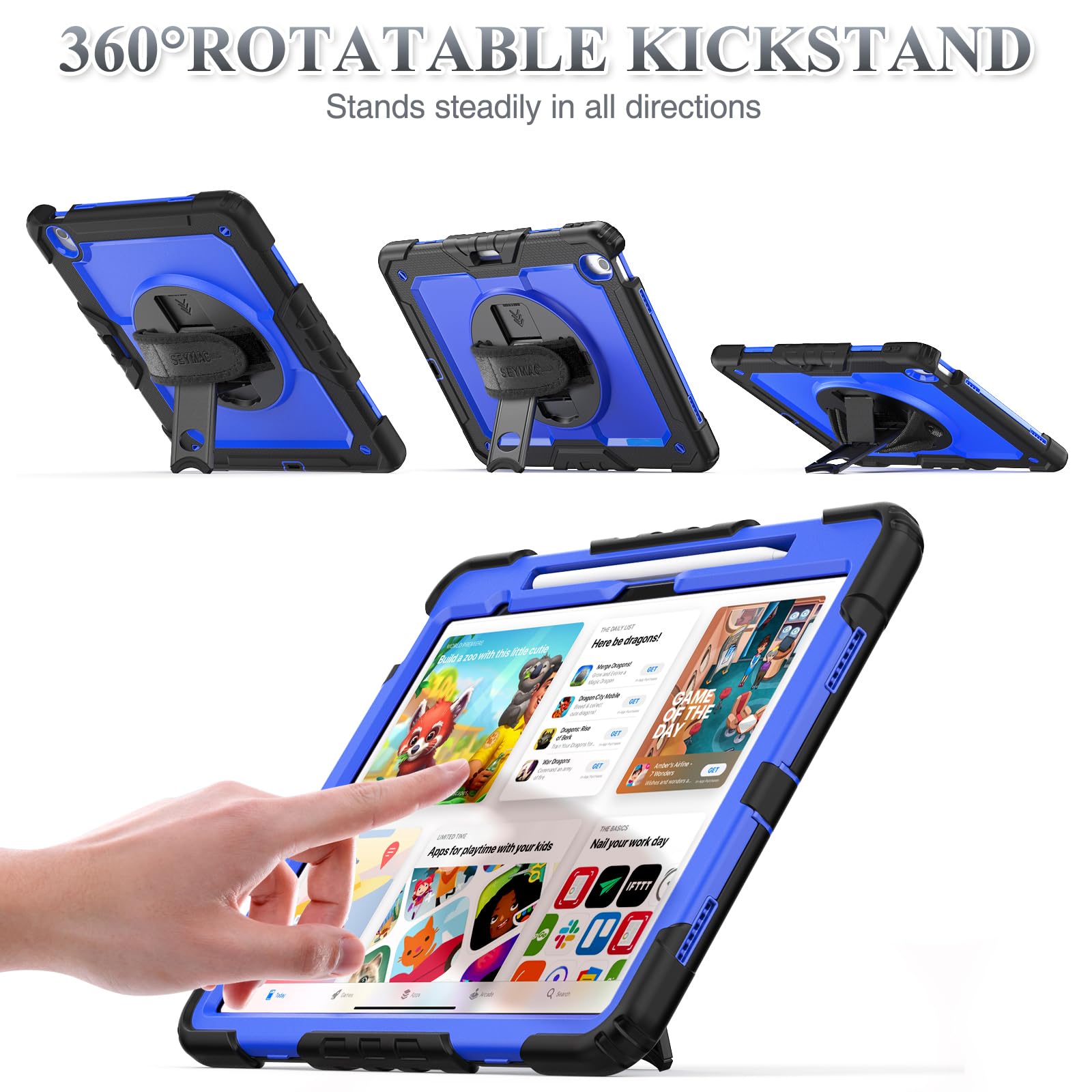 SEYMAC stock 2025年/2024年 13インチiPad Air(M3/M2)耐衝撃ケース 保護フィルム付き ペン収納 360°回転スタンド ハンドストラップ ショルダーストラップ 全面保護カバー iPad Air 13 2025/2024専用型(ブルー)