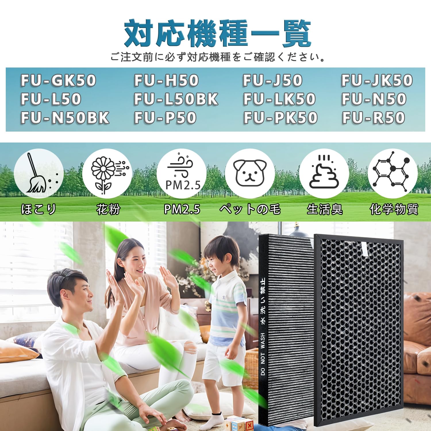 J&Q 空気清浄機用交換フィルター 脱臭フィルター FZ-B50DF(1枚) と 集じんフィルター HEPAフィルター FZ-BX50HF(1枚) 互換品 (合計2枚入り)