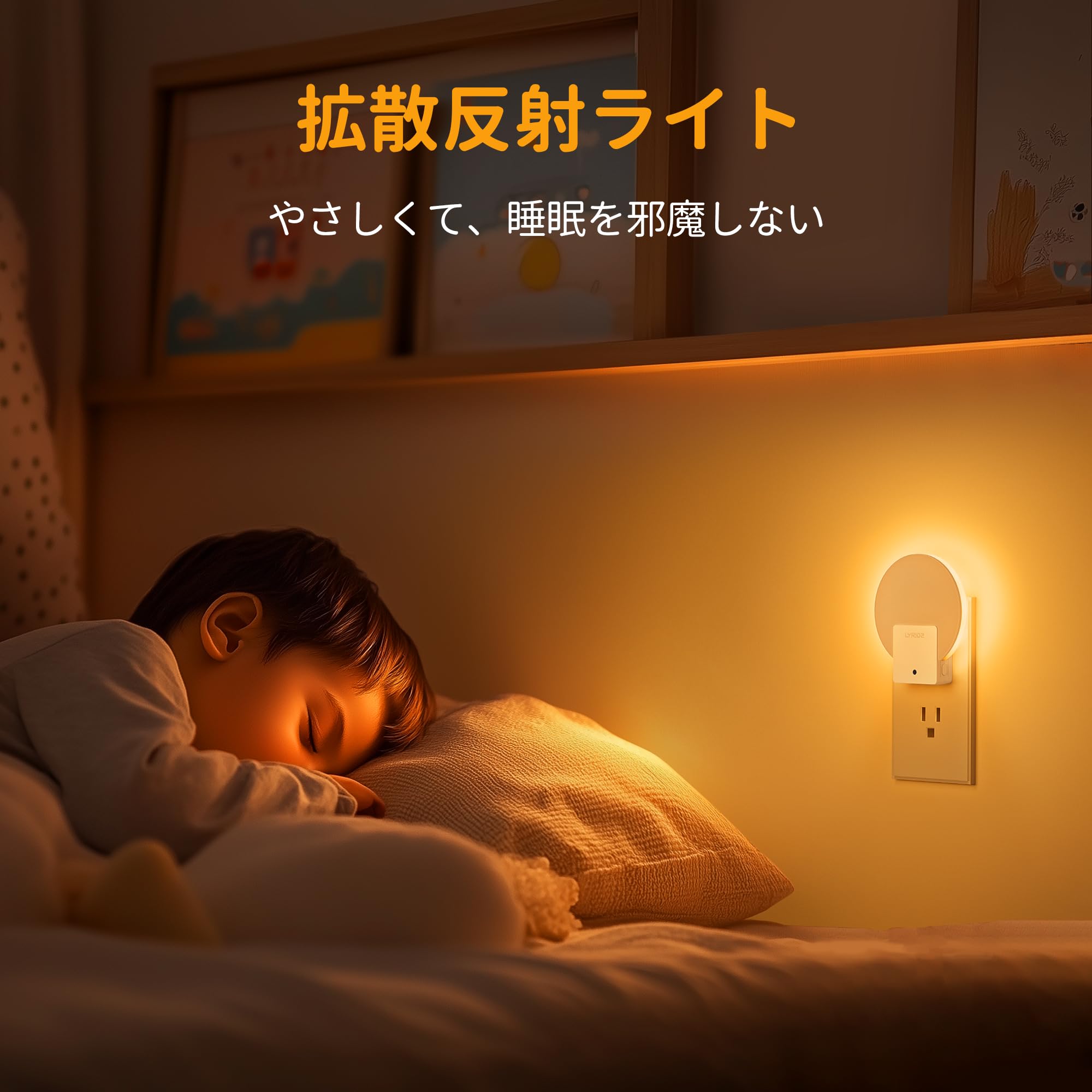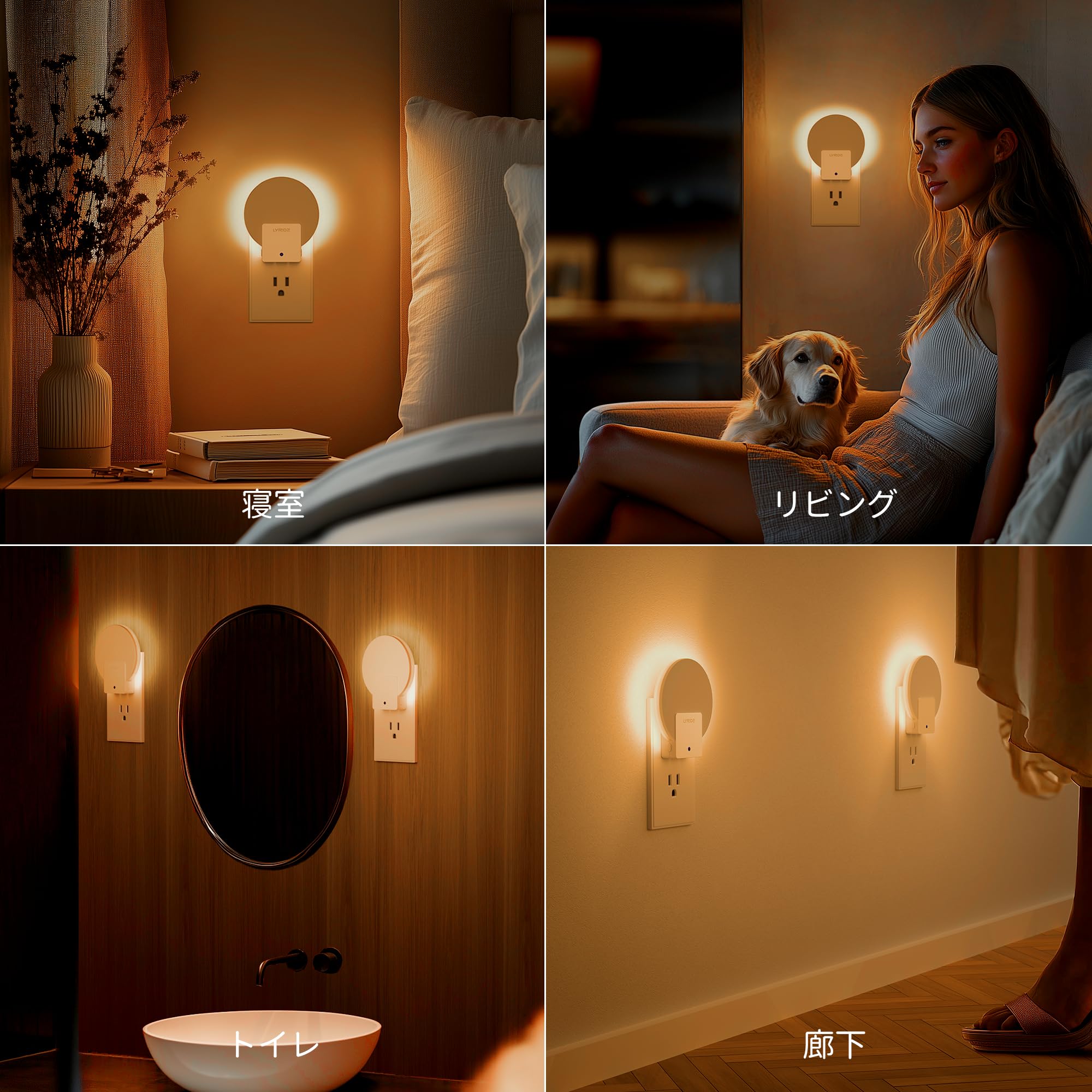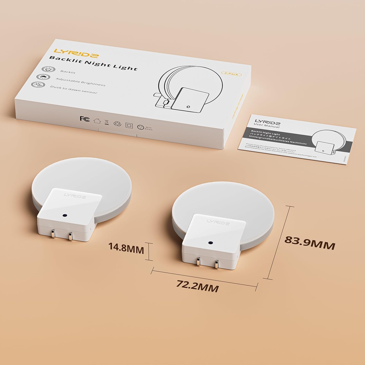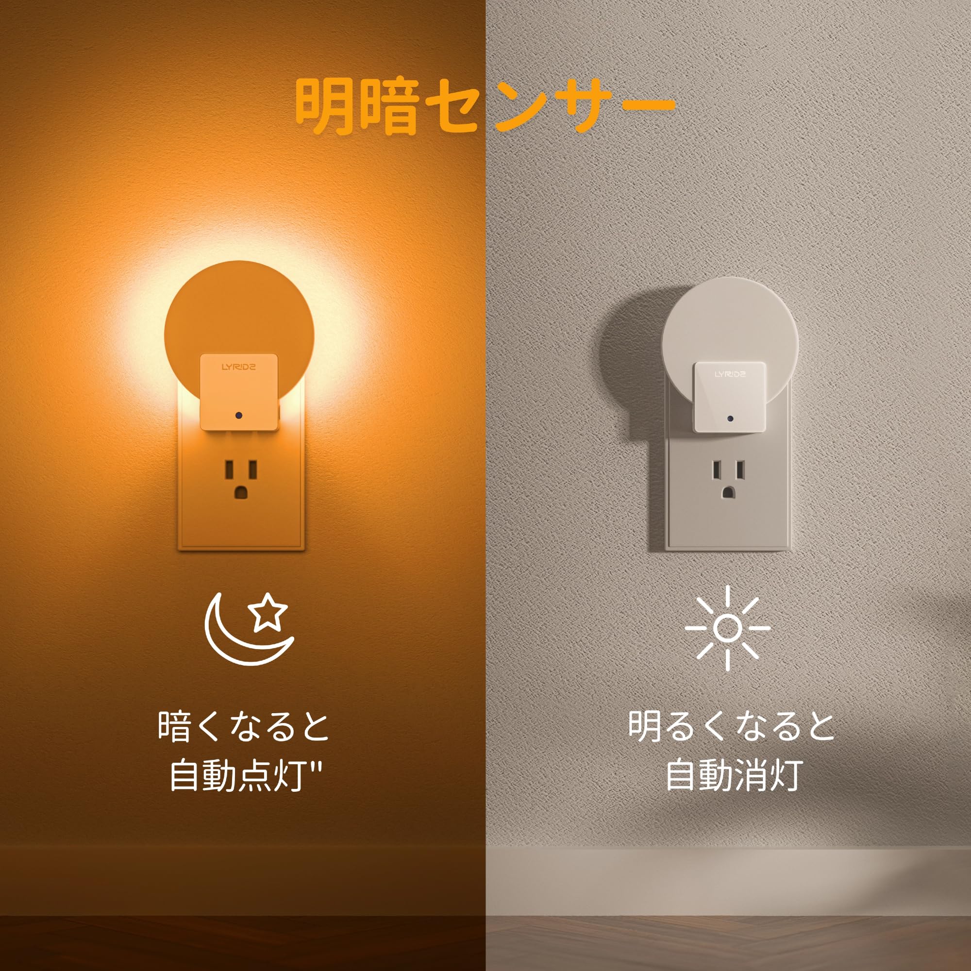Lyridz センサーライト 室内 コンセント バックライト型 足元灯 明るさ調節可 常夜灯 夜間常時点灯 フットライト 省エネ 玄関 廊下 段階 洗面台 琥珀色 (2個入り)