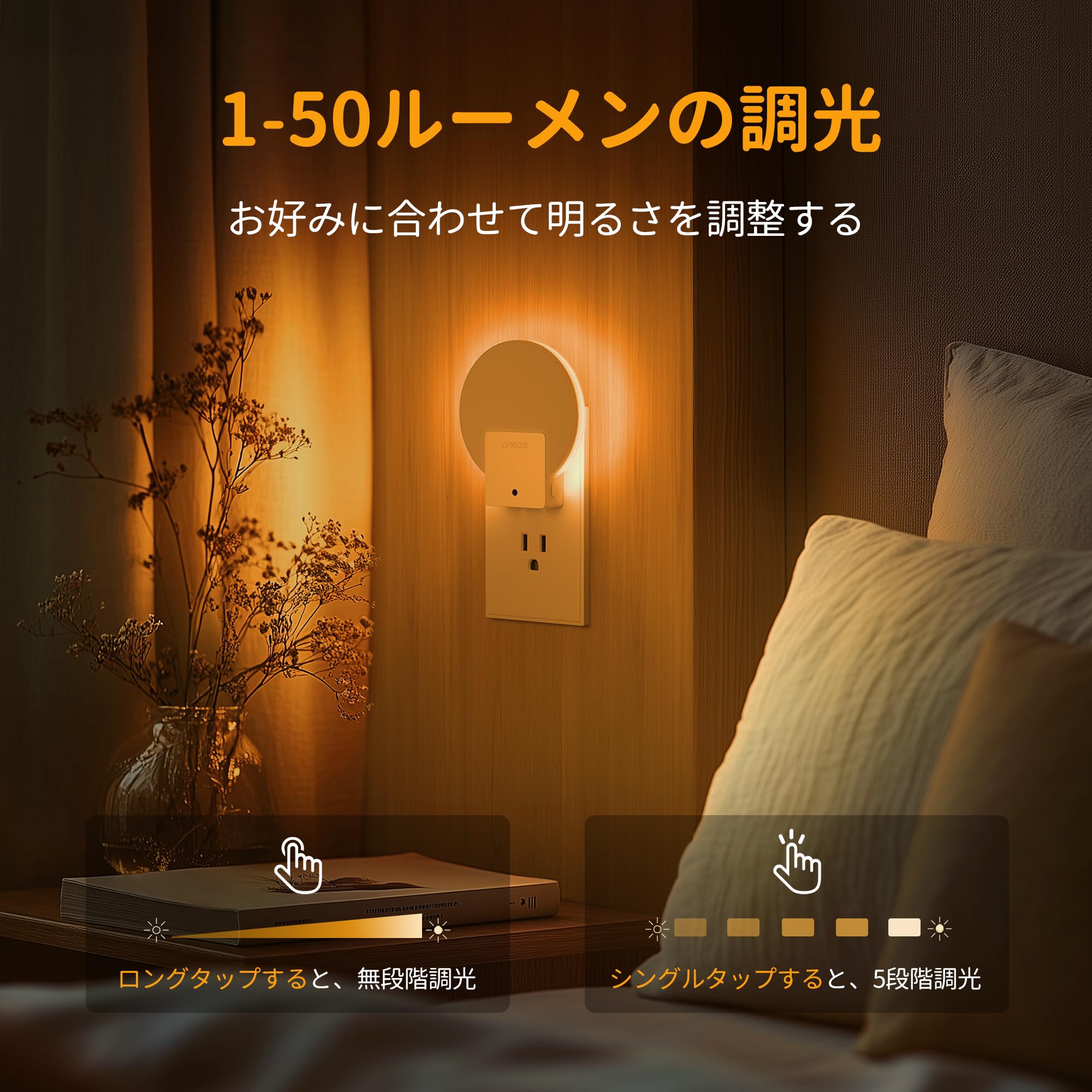 Lyridz 人感センサーライト 室内 センサーライト コンセント 足元灯 超高輝度150ルーメン 明るさ調節・点灯時間設定可能 フットライト 省エネ 廊下 寝室 玄関 階段 琥珀色 2個セット