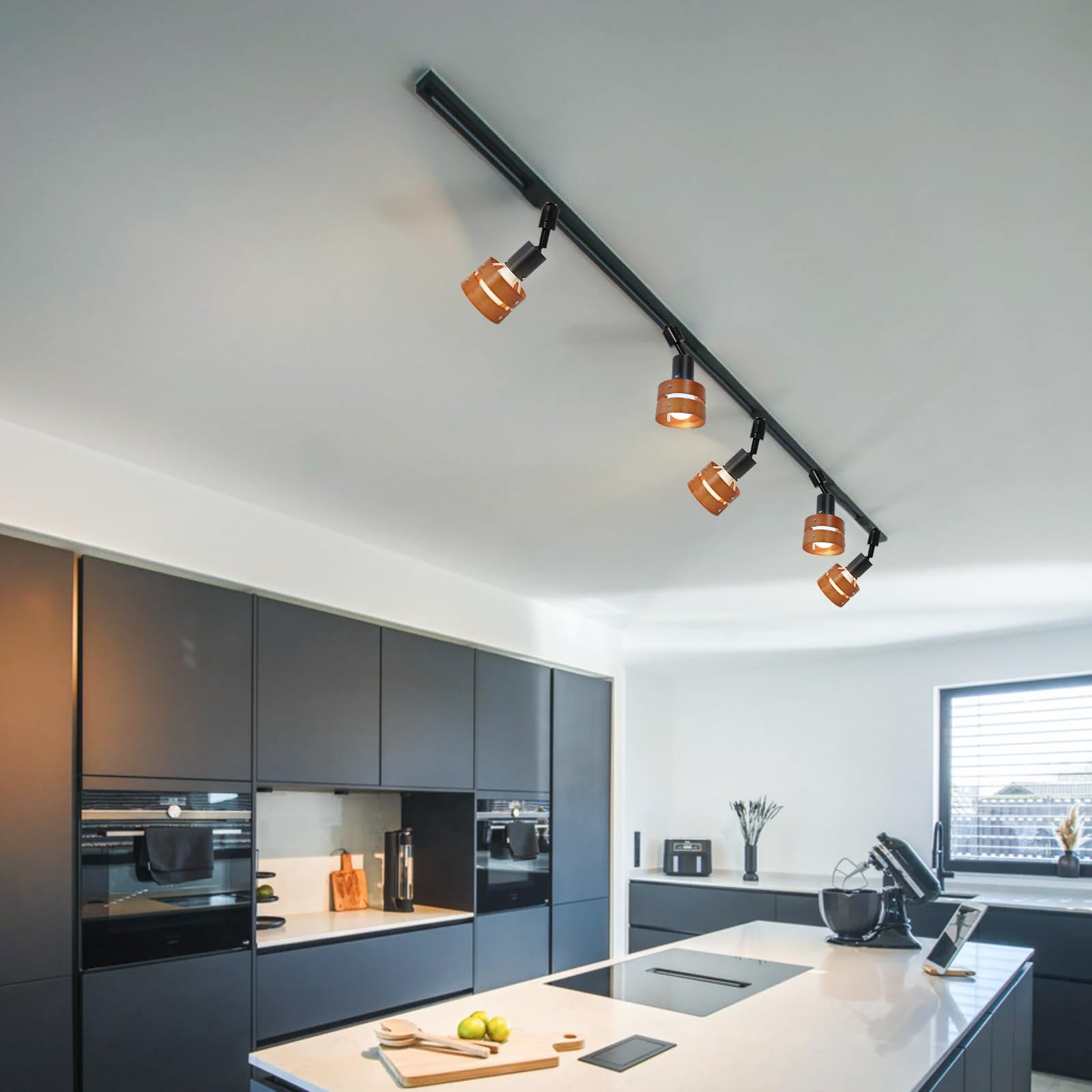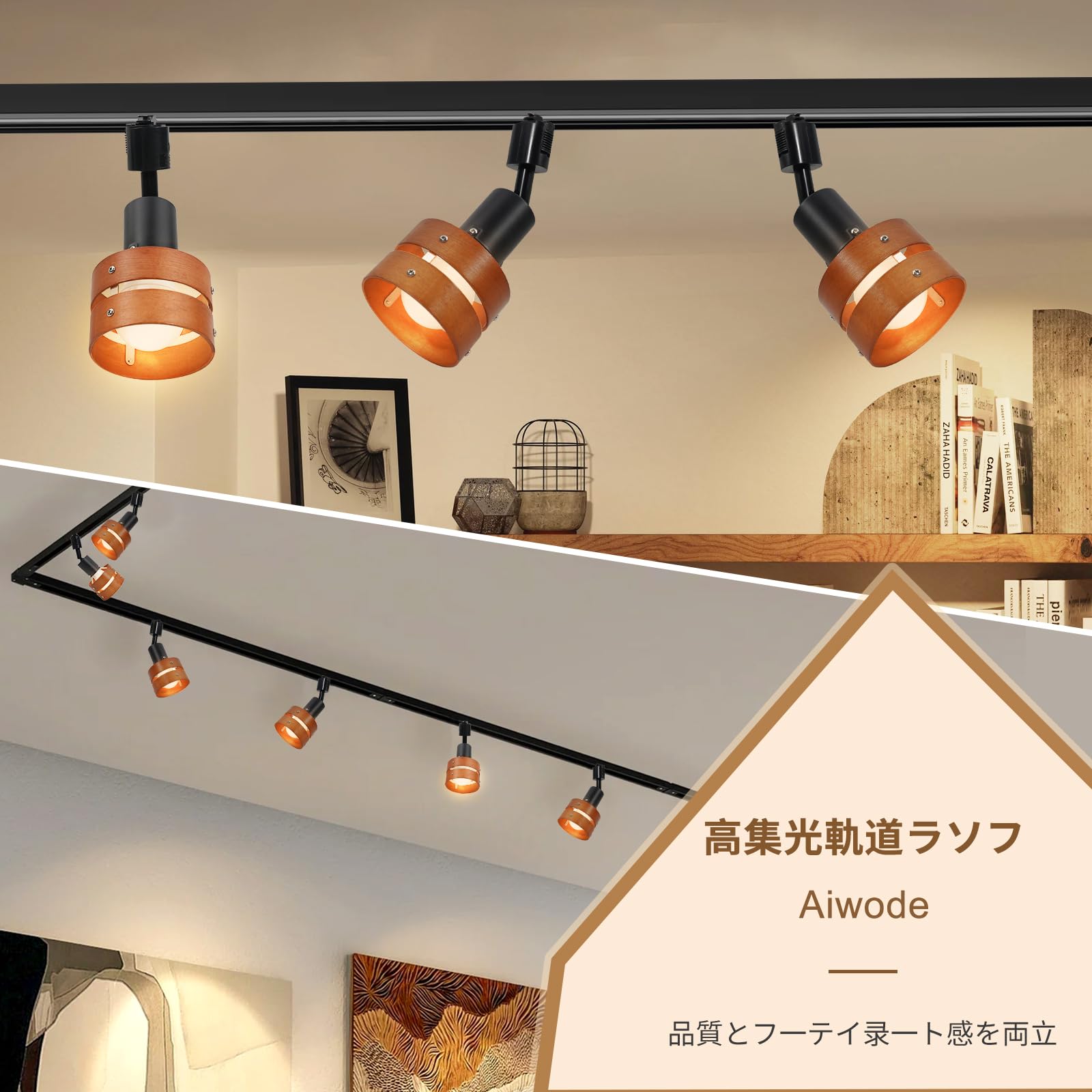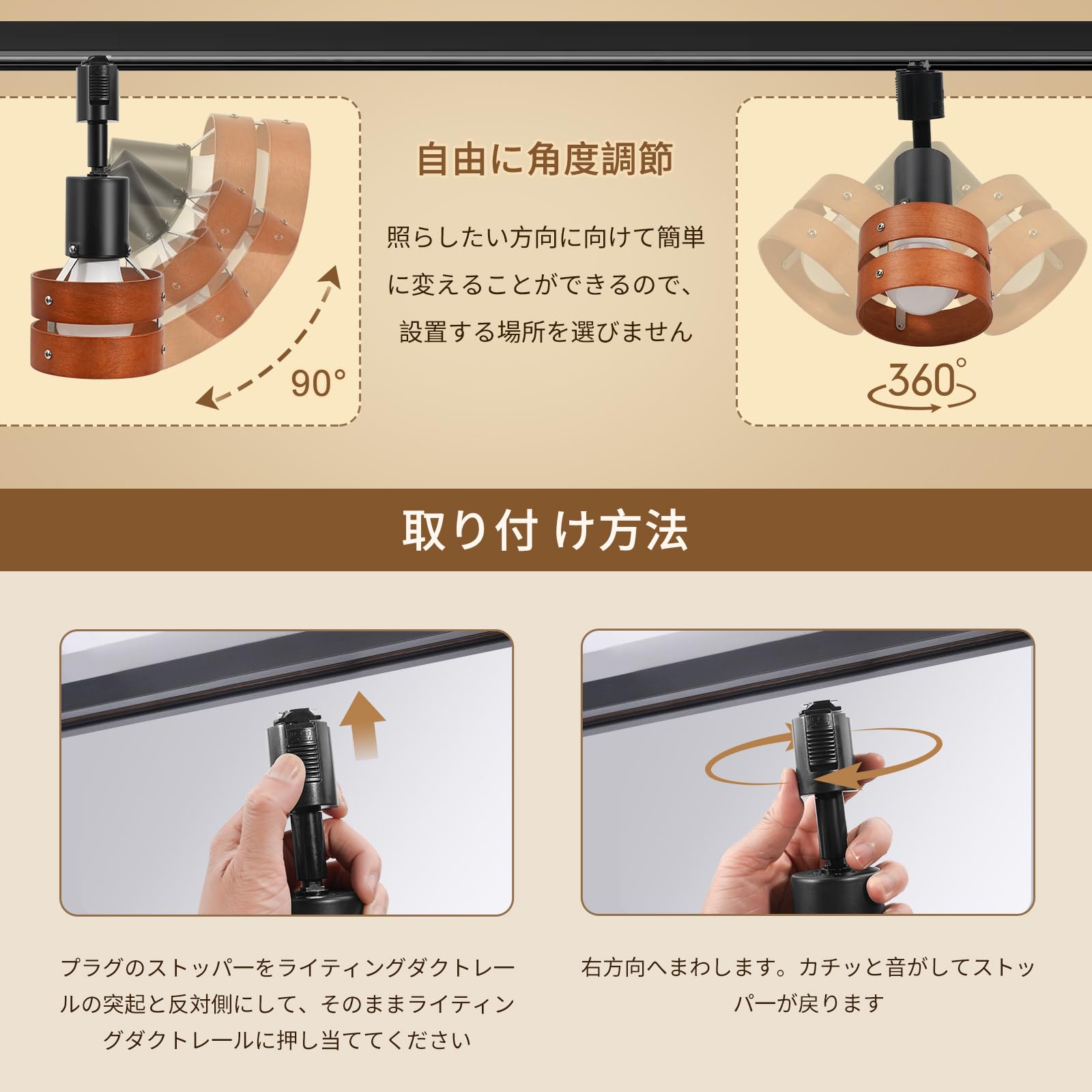 Aiwode レールライト 茶色の木製の円 ダクトレール用スポットライト E26口金 角度調節可能 ロック機構により脱落を防止 簡単なインストール 高級 和風 目に優しい 節電 省スペース設計 寝室 高級レストラン 書斎 廊下 植物の照明に適しています 電球はありません 4個入り
