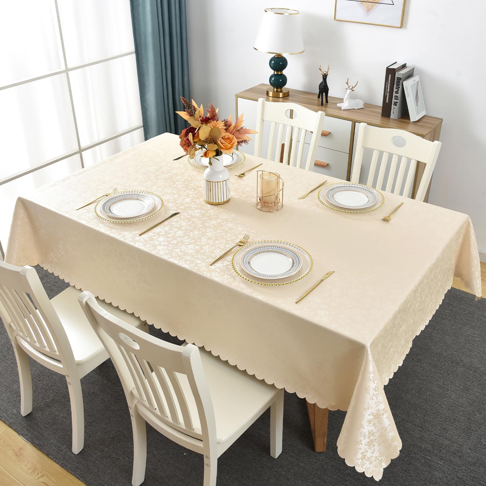 Softalker テーブルクロス クリスマス 140×180cm 長方形 撥水 正月テーブルクロス-350g/㎡ 厚手 防水・防汚・耐熱・防滑 お手入れ簡単 テーブルマット おしゃれ 北欧風 ベージュ 花柄 桌布 波型縁デザイン 家庭用/小カフェ/クリスマス/パーティー/式典/イベント用 Tablecloth