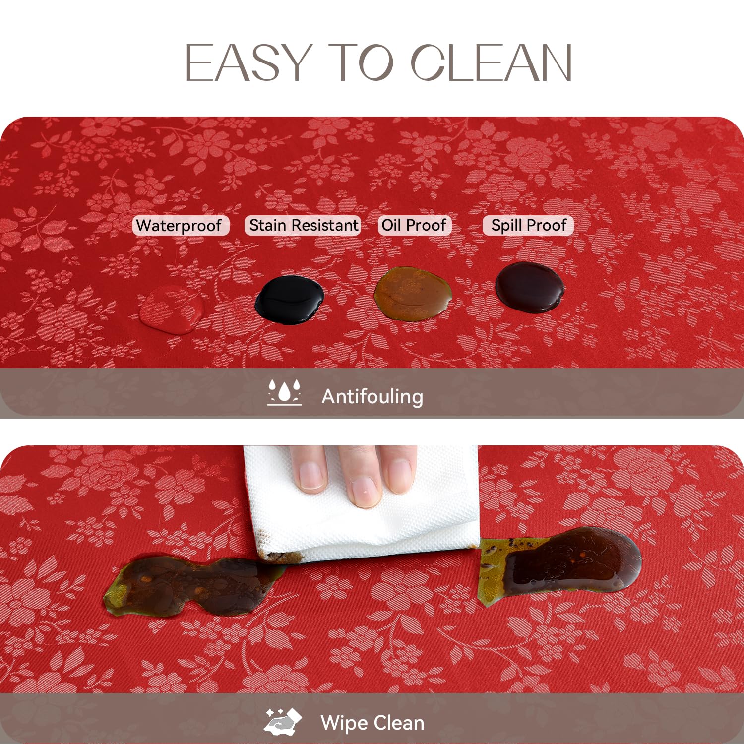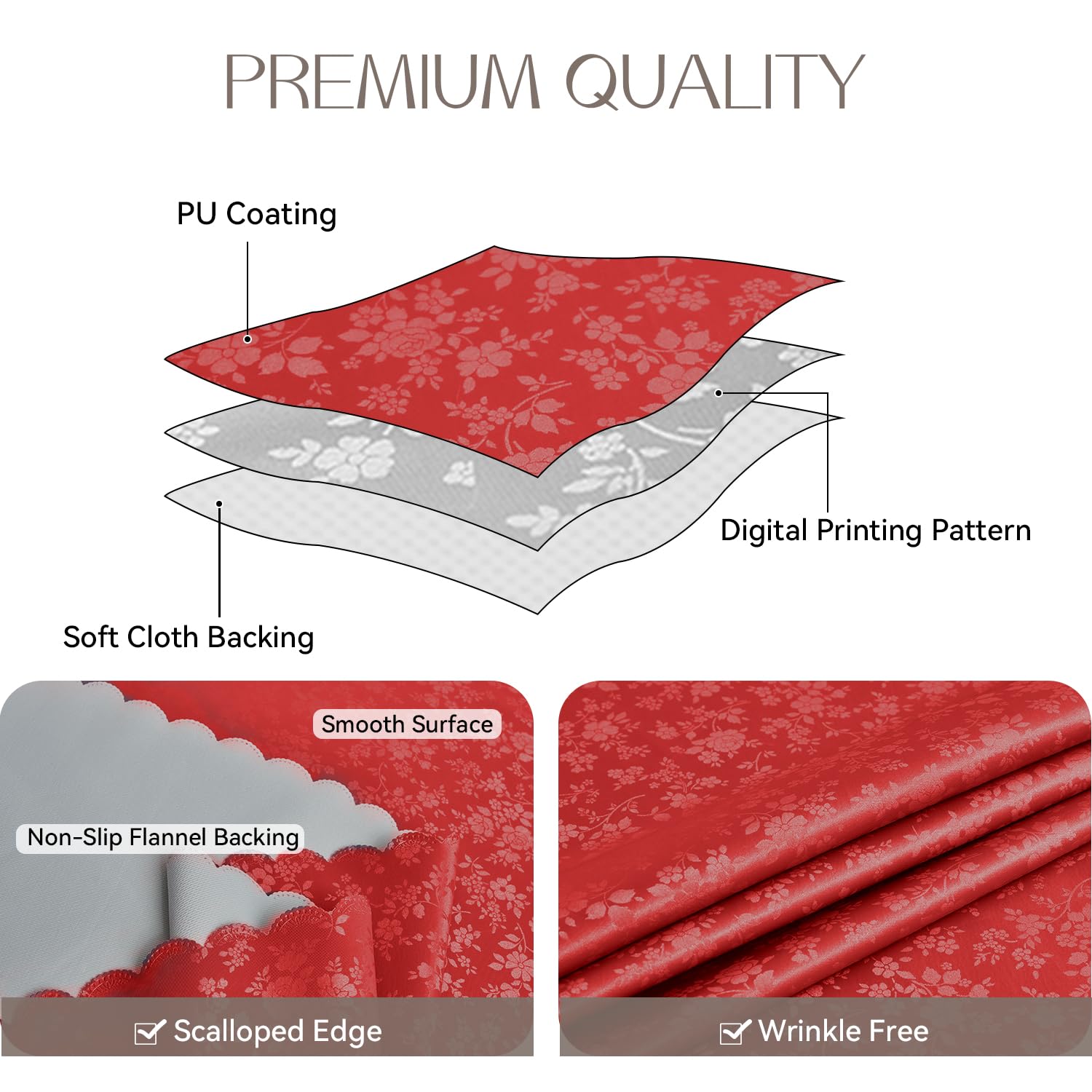 Softalker 赤 テーブルクロス クリスマスビニール 90×90 cm 撥水 正方形 テーブルクロス-350g/㎡ 厚手 防水・防汚・耐熱・防滑 北欧風 花柄 食卓カバー 波型縁デザイン正月桌布 家庭用/小カフェ/クリスマス/パーティー/式典/イベント用 Xmas Table cloth Waterproof