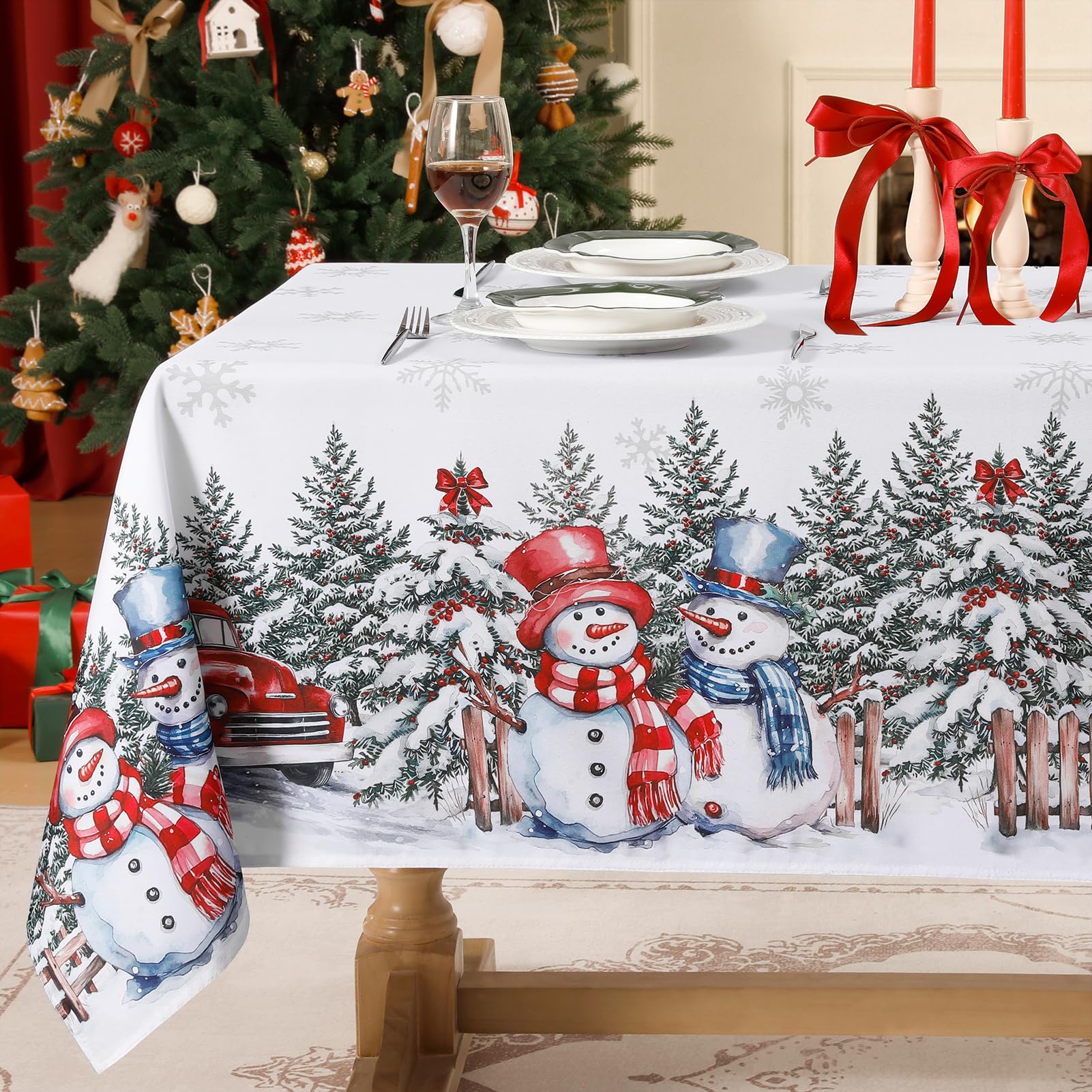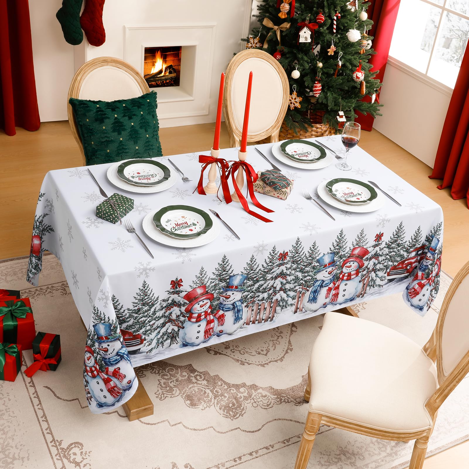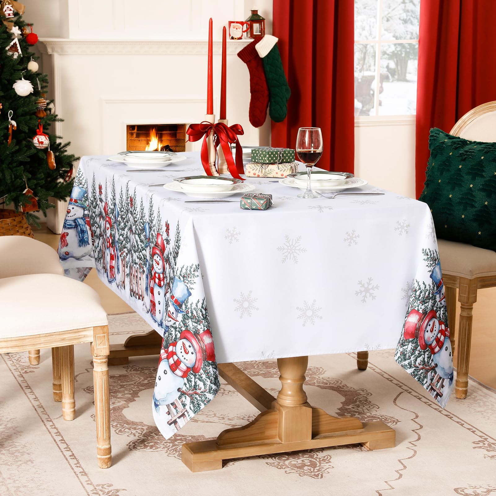 Softalker 緑 クリスマステーブルクロス 90×90 cm 正方形 雪だるま&クリスマスツリーデザイン 正月桌布 テーブルクロス-撥水・防汚・耐熱 おしゃれ 北欧風 食卓カバー 家庭用/新年/クリスマス/大判カフェ/式典/パーティー用 Xmas Table cloth for Dining Table