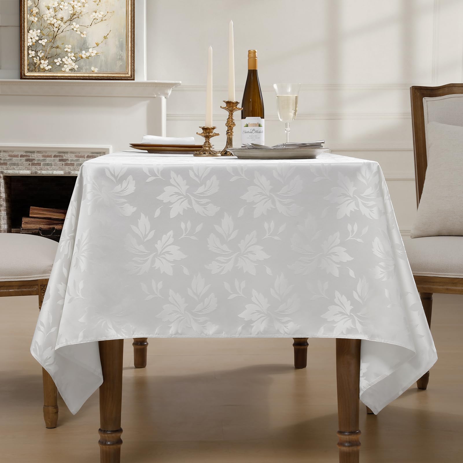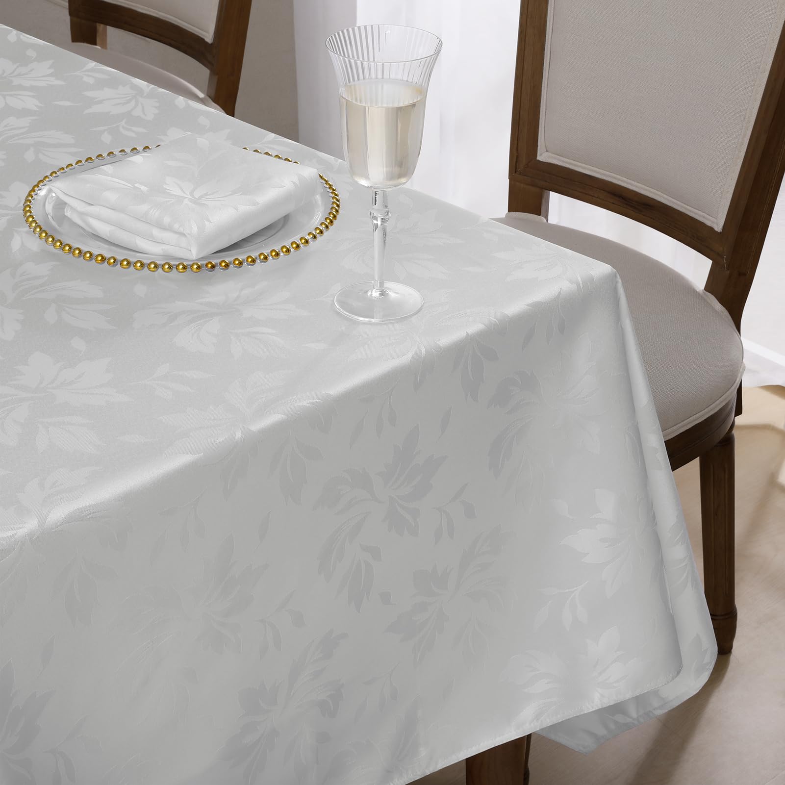 Softalker 白 クリスマステーブルクロス 長方形 140×180cm 撥水 花柄 ジャカードテーブルクロス- 防水 防汚 耐熱 滑り止め お手入れ簡単 無地 北欧風 厚手桌布 家庭用/カフェ/クリスマス/パーティー/イベント/正月用 Table cloth