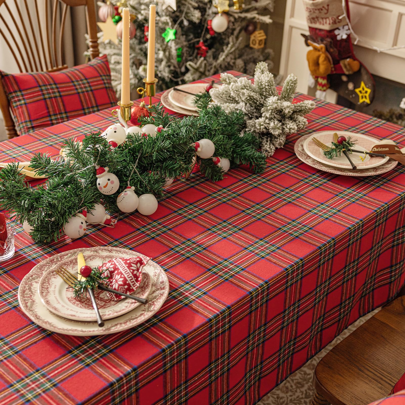 Softalker テーブルクロス クリスマス 赤 180×135cm 長方形 チェック正月桌布 テーブルクロス-汚れ防止 お手入れ簡単 テーブルマット 耐熱 防水 おしゃれ 北欧風 家庭用・お正月・ デスク・ 小 カフェ・式典・パーティー用 Xmas Table cloth for Dining Table