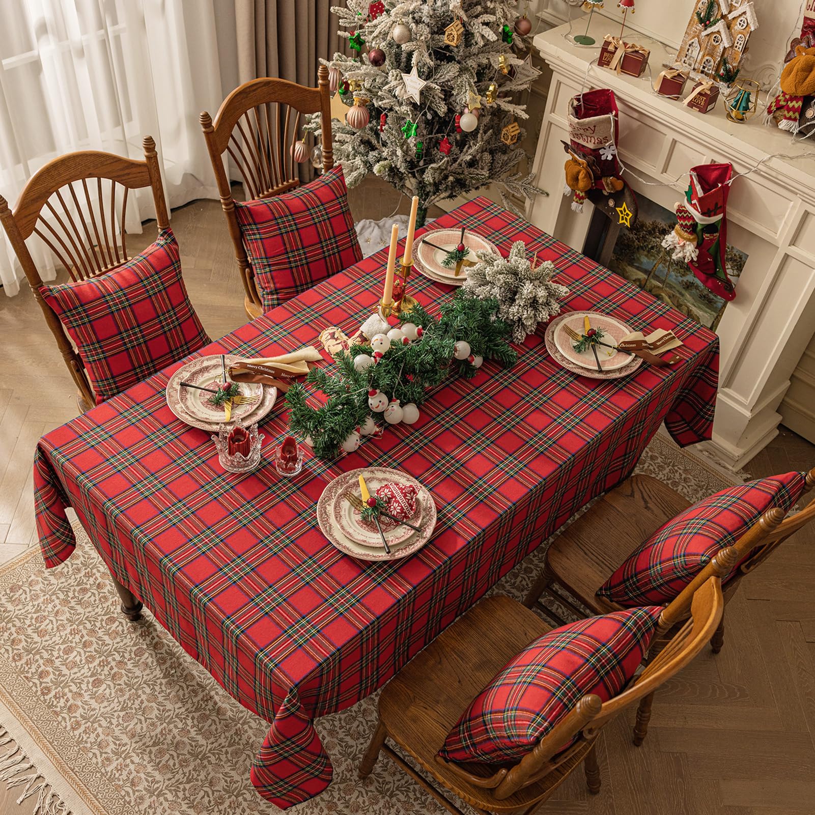Softalker チェック テーブルクロス クリスマス 赤 150×120cm 長方形 正月桌布 テーブルクロス-汚れ防止 お手入れ簡単 テーブルマット 耐熱 防水 おしゃれ 北欧風 家庭用・お正月・ クリスマス・式典・小 カフェ・パーティー用 Xmas Table cloth for Dining Table