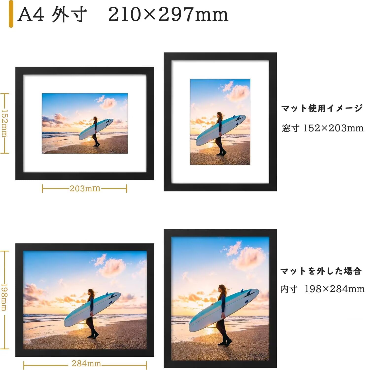 upsimples ブラック フォトフレーム A4 3個セット額縁 a4 29.7x21cm