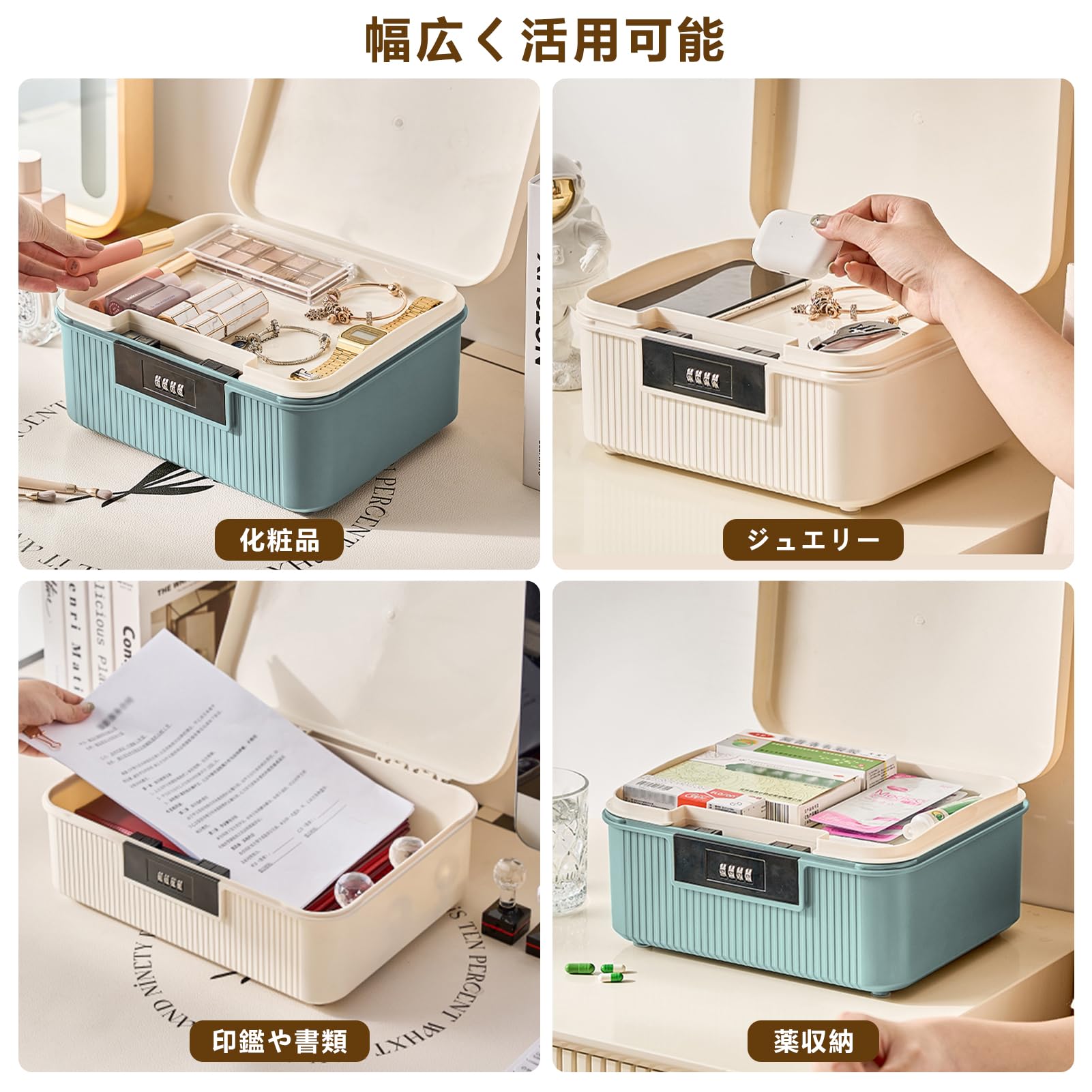 yazi 金庫 家庭用 小型 ダイヤル式 コンビネーションロック 収納ボックス 大容量2段式 16L ミニ金庫 プラスチック製 貯金箱 キャッシュ・重要書類・銀行カード 貴重品入れ (ブルー, L)
