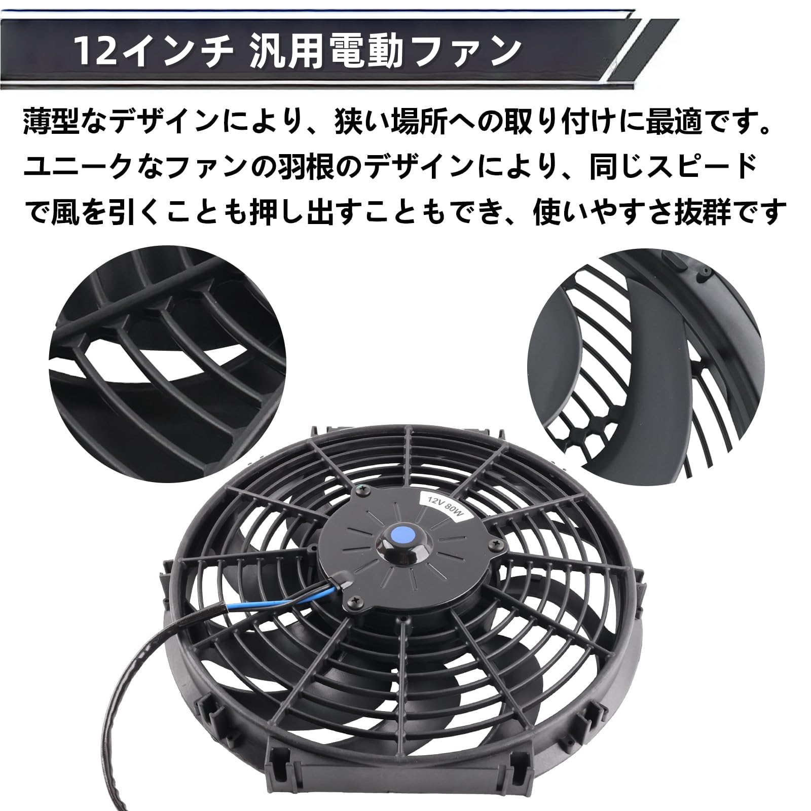 エンジン冷却ファン 12インチ ユニバーサルスリム 吹風式 電動ラジエーター 12V 80W 電動ファン プ 自動車用 Engine Cooling Fan (ブラック)