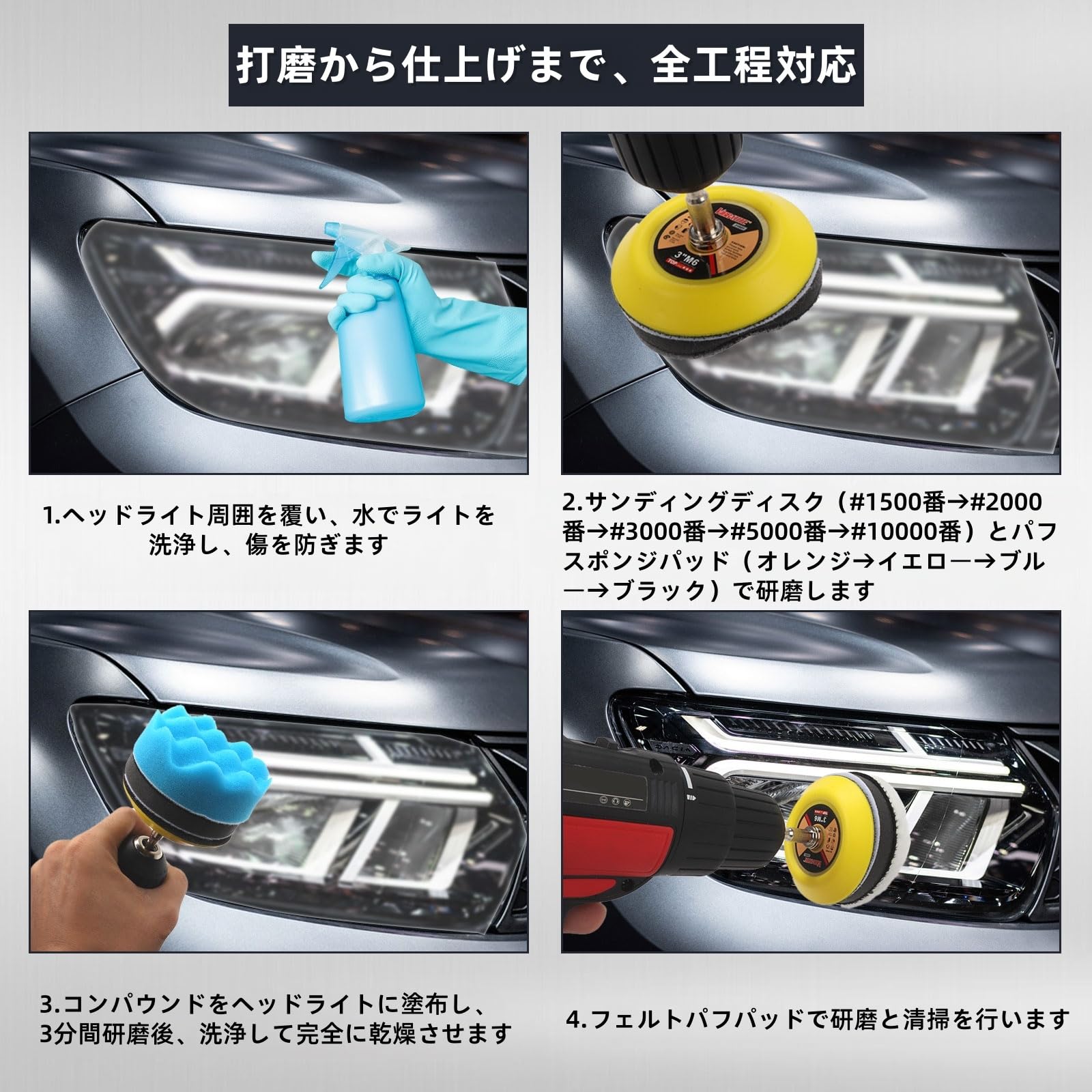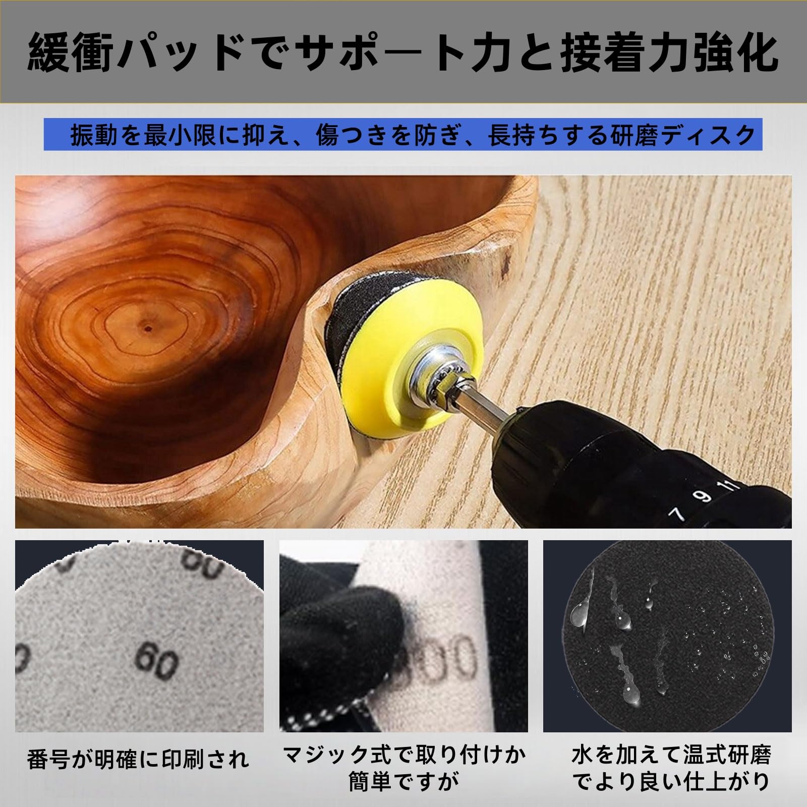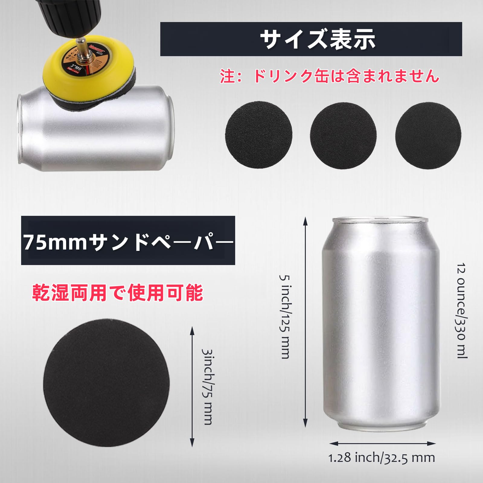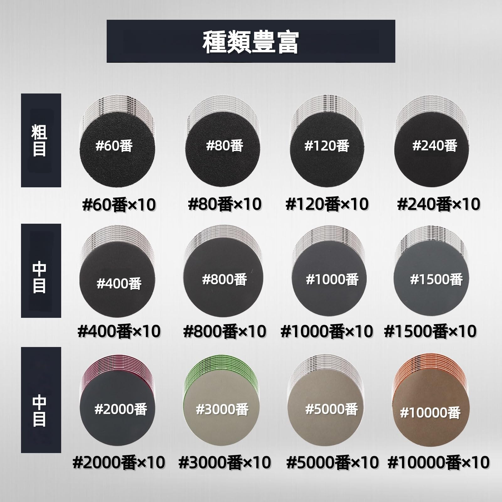 133枚 75mm 耐水ペーパー ウェット&ドライ対応 サンドペーパー 12種類の粒度(60-10000番) フック&ループ付き ヘッドライト磨き用 電動ポリッシャー/ドリル兼用 車体・木材・金属・ガラス・レジン対応 艶出し 水垢取り 塗装仕上げ 鏡面仕上げ用