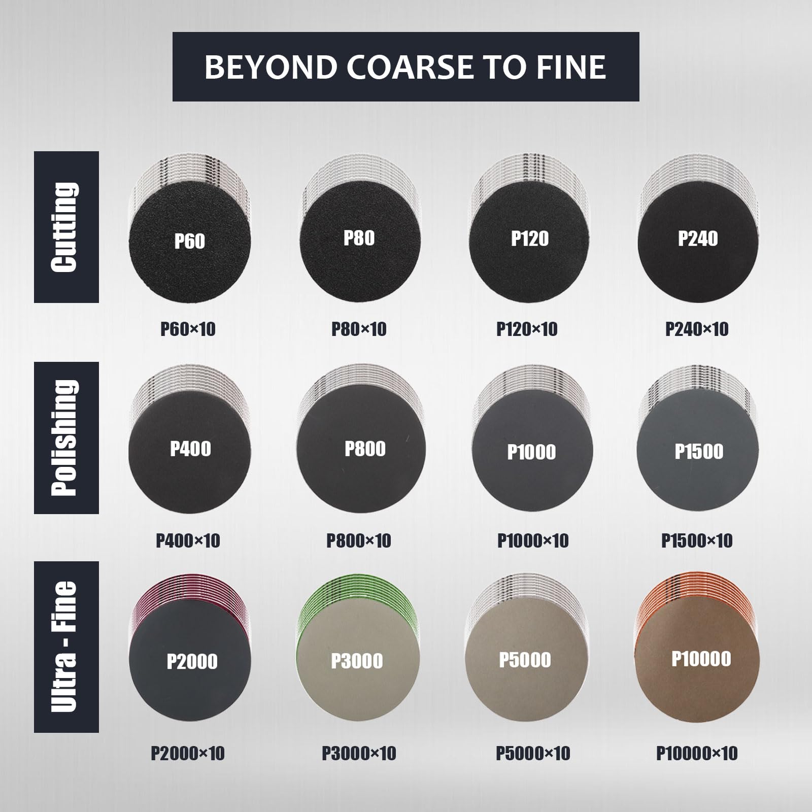 [幅広い用途] 研磨紙は金属、木材、プラスチック、アルミニウム、人造石、木製家具、金型製作、精密機器研磨、自動車研磨、翡翠ジュエリー研磨などに使用できます。仕様:製品タイプ:133枚 75mm サンドペーパーセットパッケージの内容:60~10000番手までの75mmサンドペーパー120枚(各番手10枚)6枚の研磨パッド(2枚緩衝プレート付き)2枚六角軸&1枚丸軸スポンジサンディングブロック2個