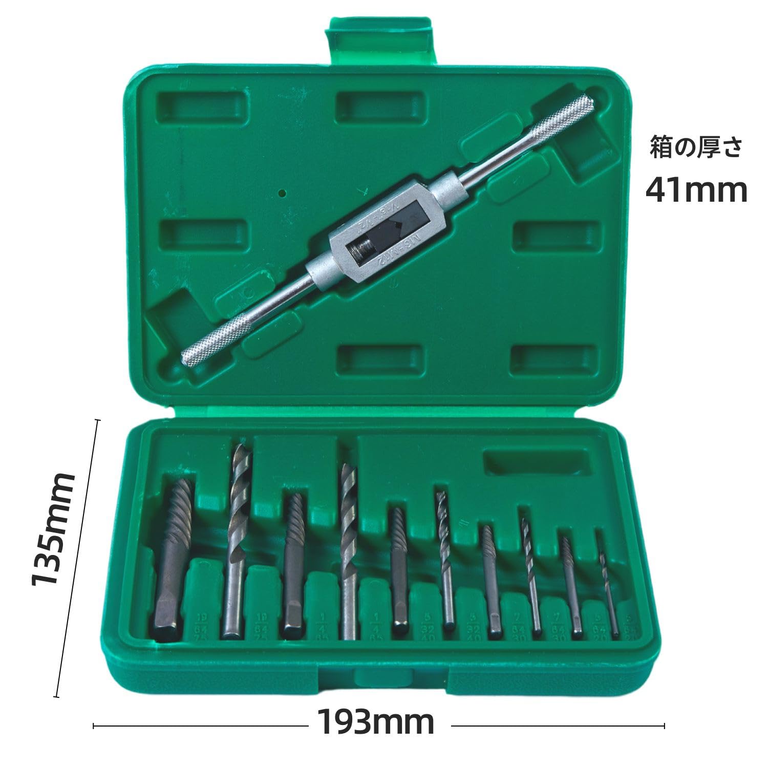 11点セット 折れた 潰れた ネジ 外し エキストラクター ボルト抽出エキストラクター 逆タップ工具セット 損傷ボルト・ネジ除去 付属ドリル・タップハンドル