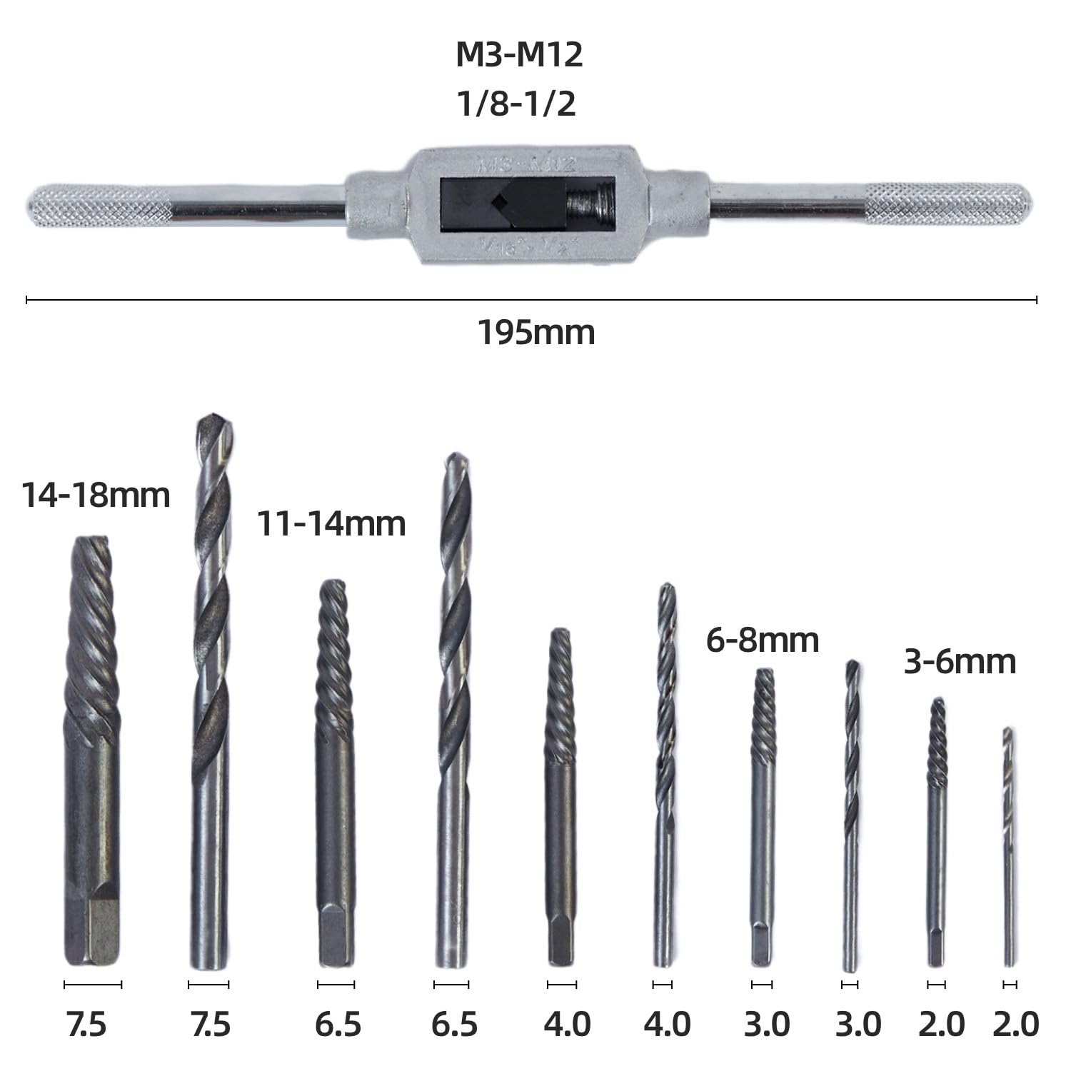 LOOKGOU 折れた、潰れた ネジ 外し エキストラクター 11 セット ボルト抜き 逆タップ 工具 セット タップハンドル ドリル 付き
