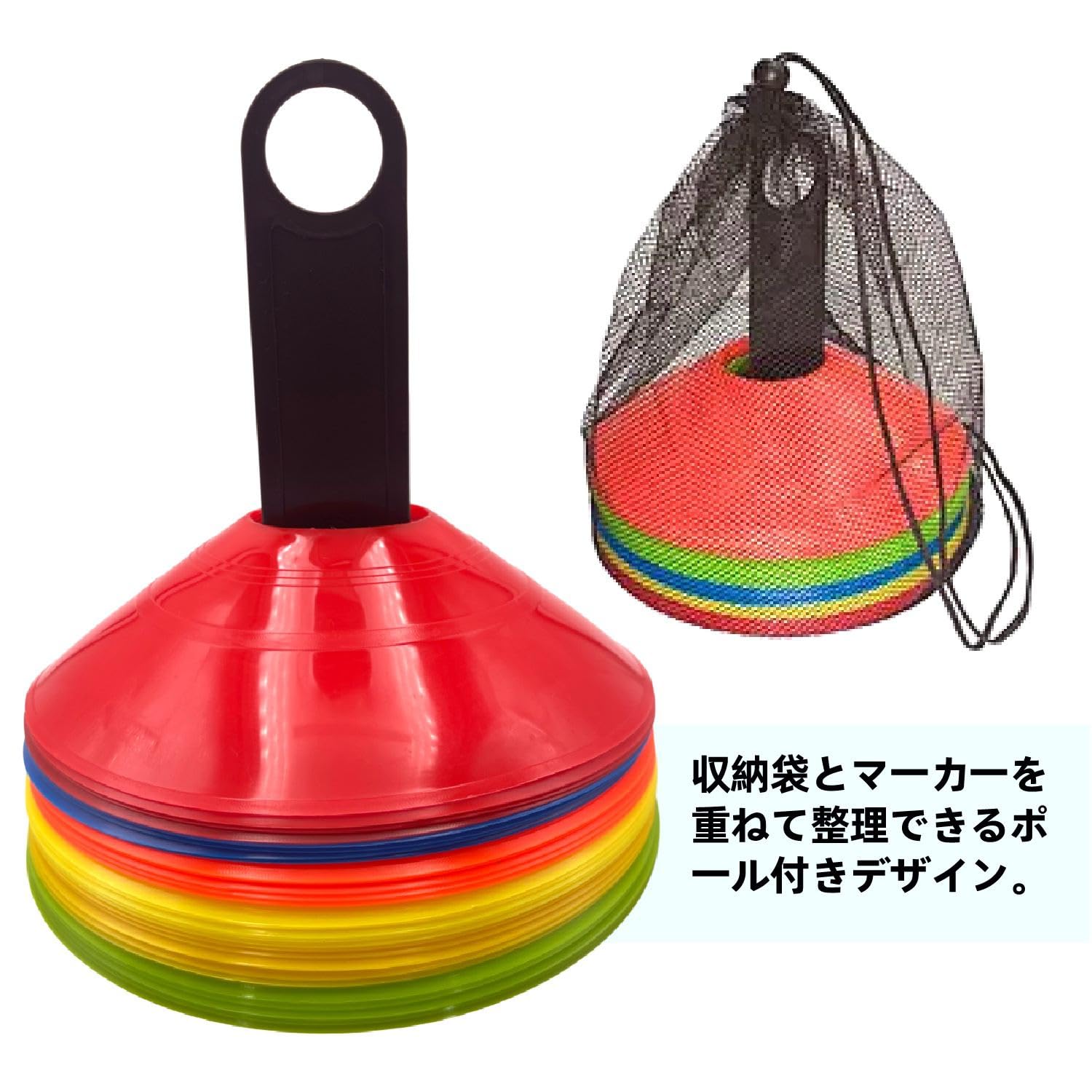 マーカーコーン カラーコーン 10枚/15枚/20枚/25枚/30枚/50枚/60枚選択 トレーニングコーン ディスクコーン フットサル用品 ドリブルマーカー サッカー 野球 テニス練習コーン 収納袋・専用スタンド付き