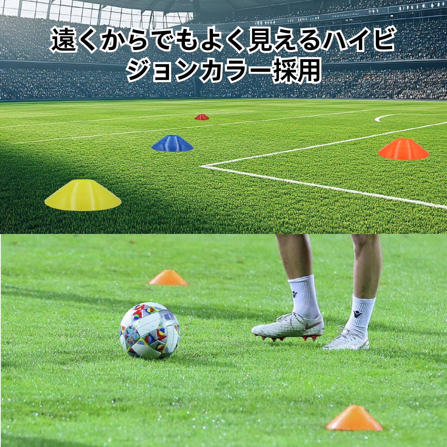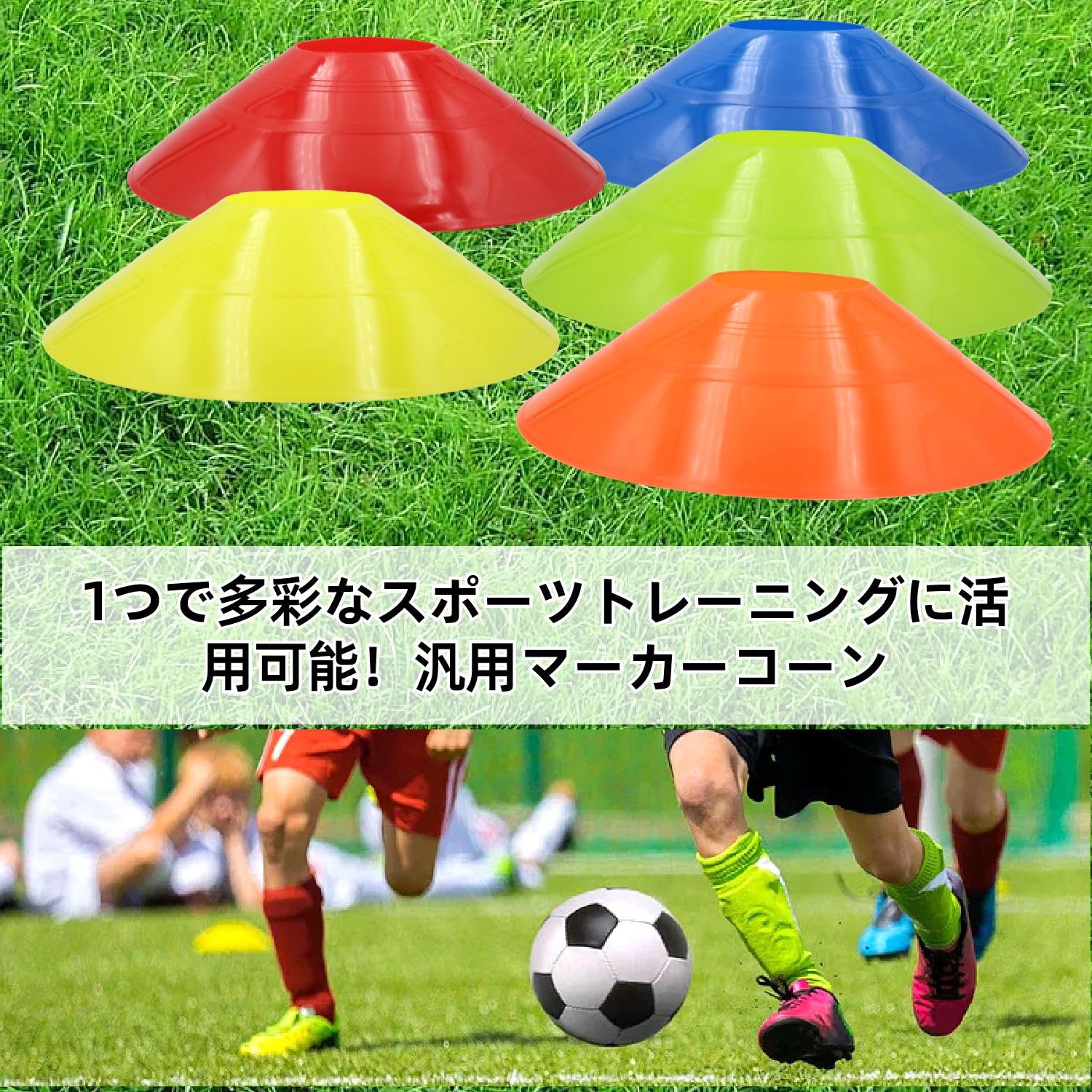 マーカーコーン サッカー トレーニングコーン 5色 20枚セット ディスクコーン 柔らかい PE製 マーカーコーン スタンド付き 野球 テニス サッカー 練習コーン サッカー フットサル用品 サッカー練習用品