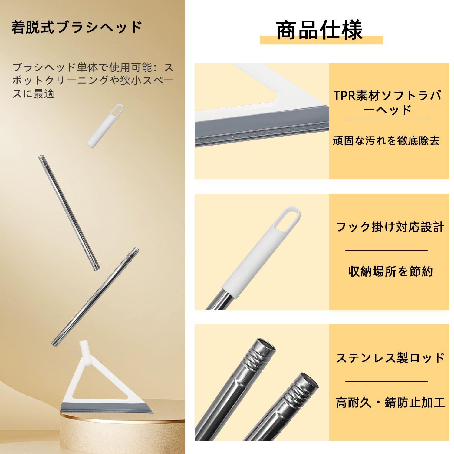 JEHONNほうき全長141cm 穂幅36cm 収納に便利 掃除道具 箒屋外 室内 長柄玄関 ホーム ショップ最適 ベージュ黒 3本入り