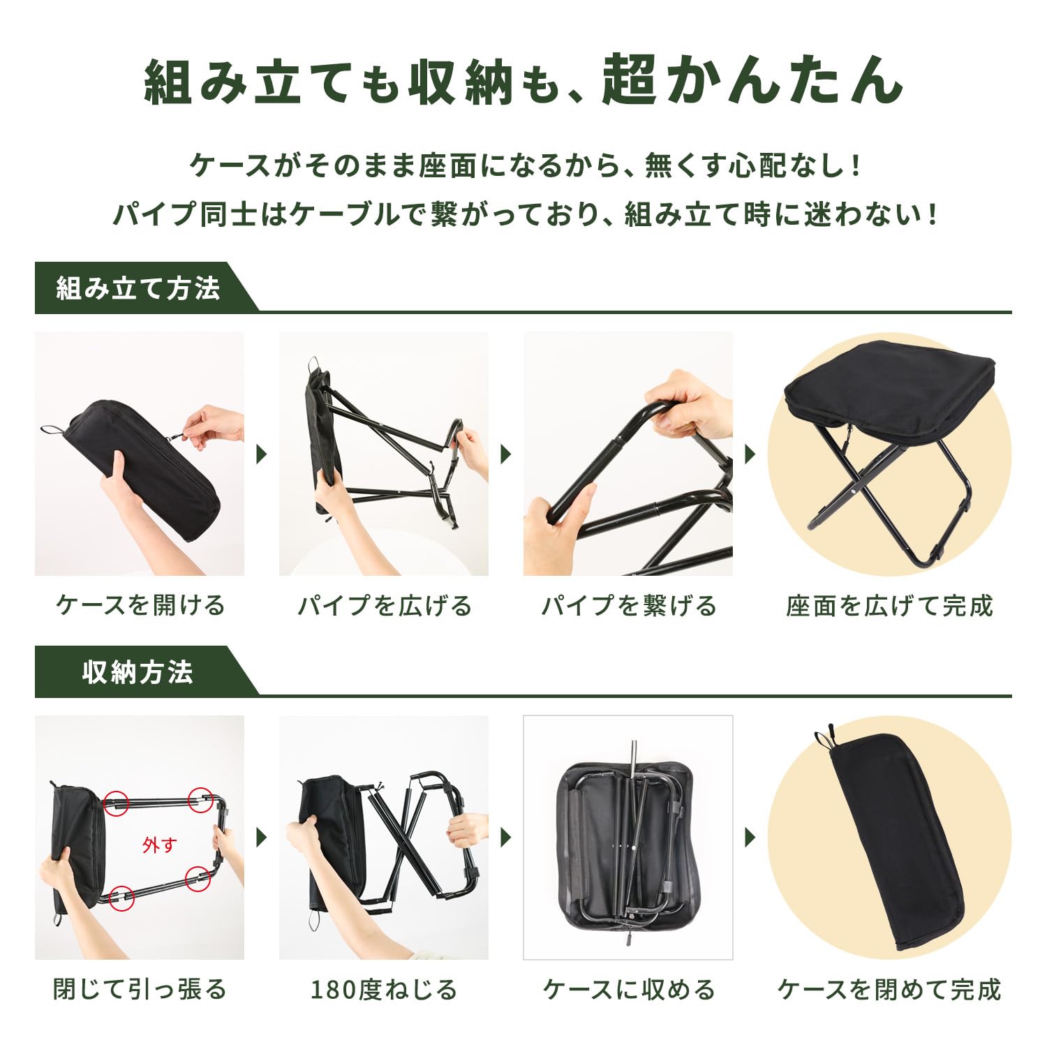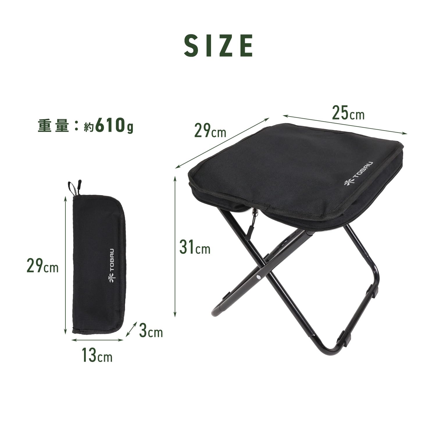 [TOBAU] アウトドアチェア コンパクト 軽量 ジップタイプ 折りたたみ椅子 折り畳み椅子 キャンプチェア ミニサイズ (ブラック)