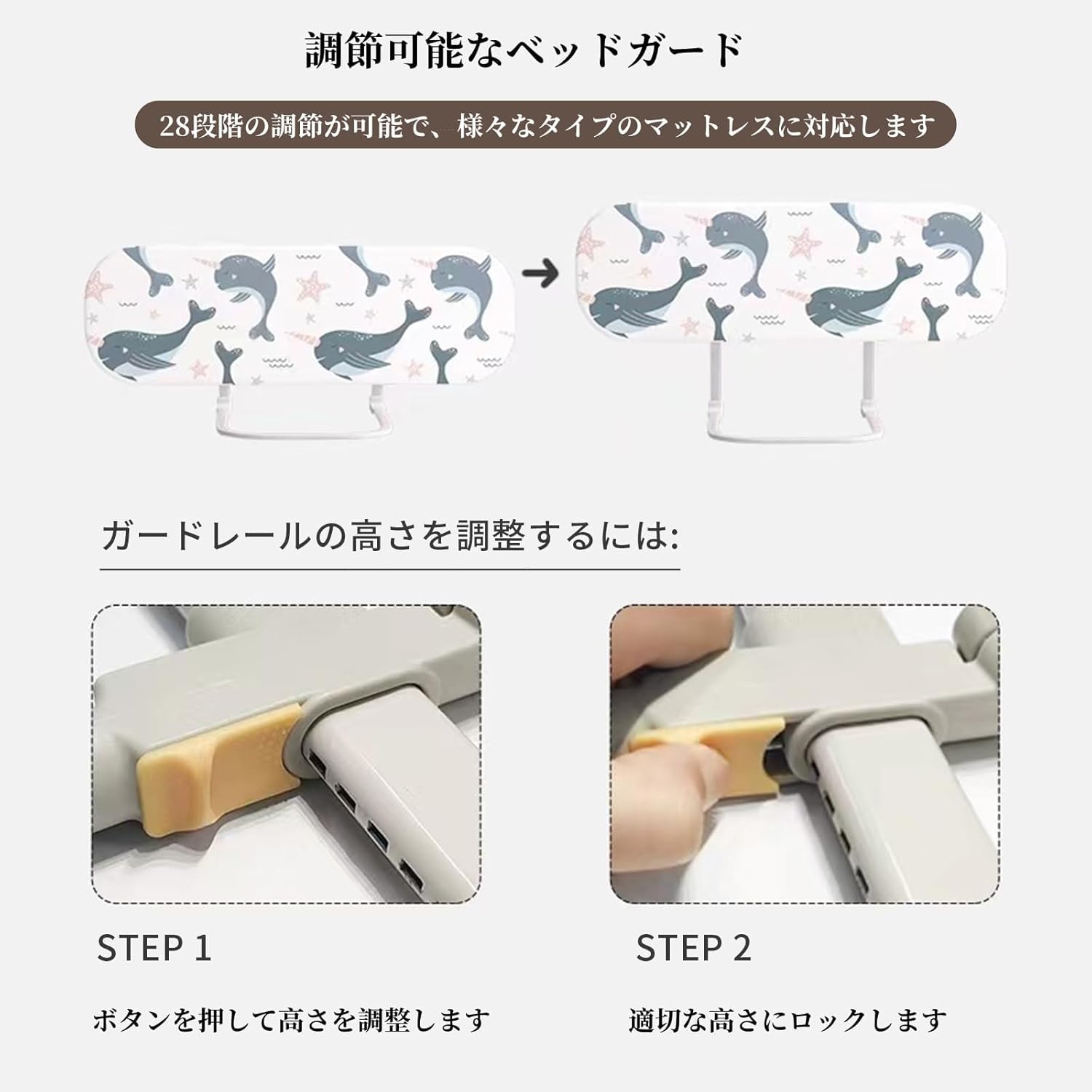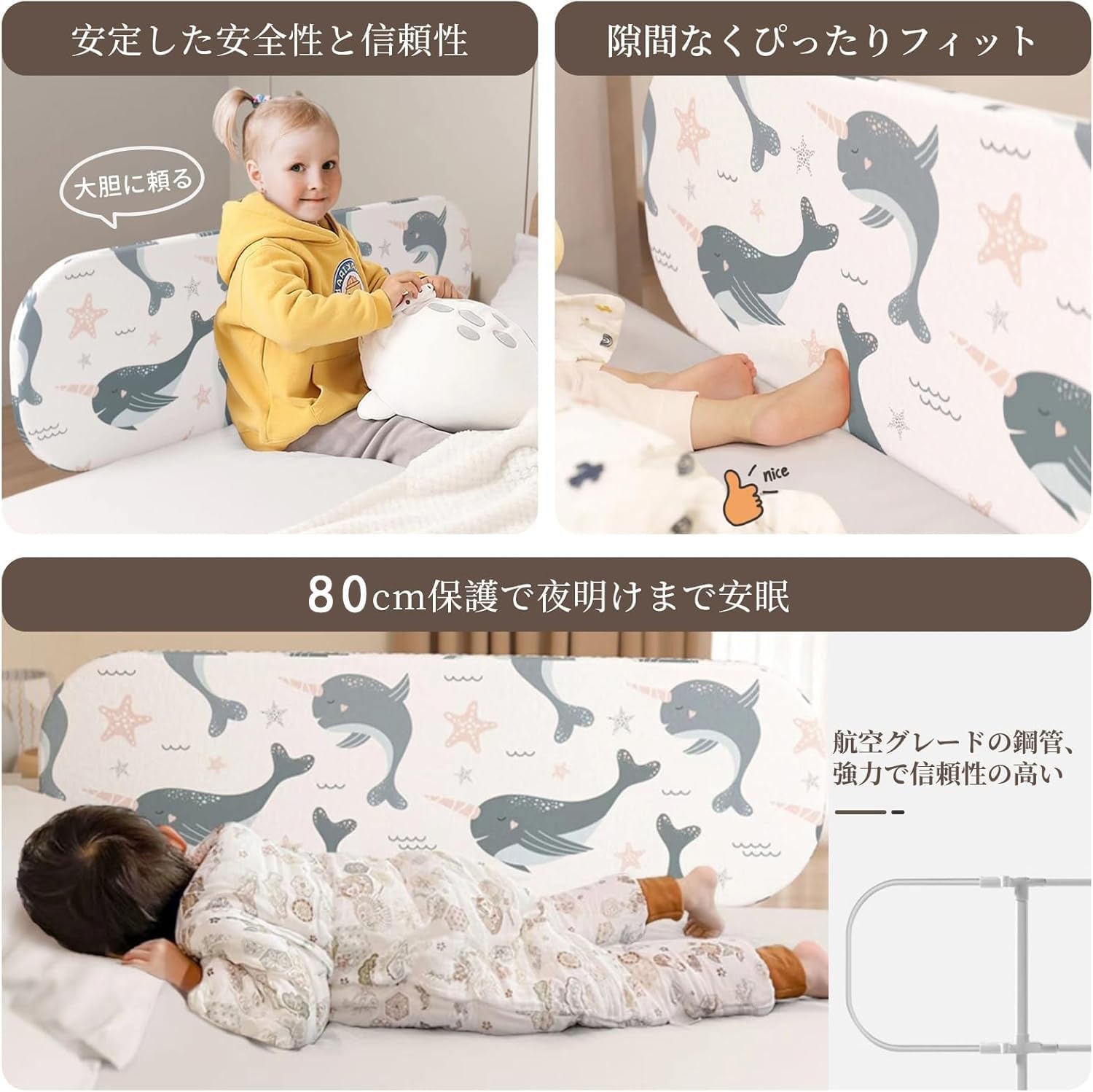 Reelyo ベッドガード 赤ちゃんベッドフェンス 折りたたみ式ベッドガード 赤ちゃん クッション ハイタイプ ベッド柵 ベビーベッドガード 折りたたみ可能 携帯可能 転落防止 (クジラ)