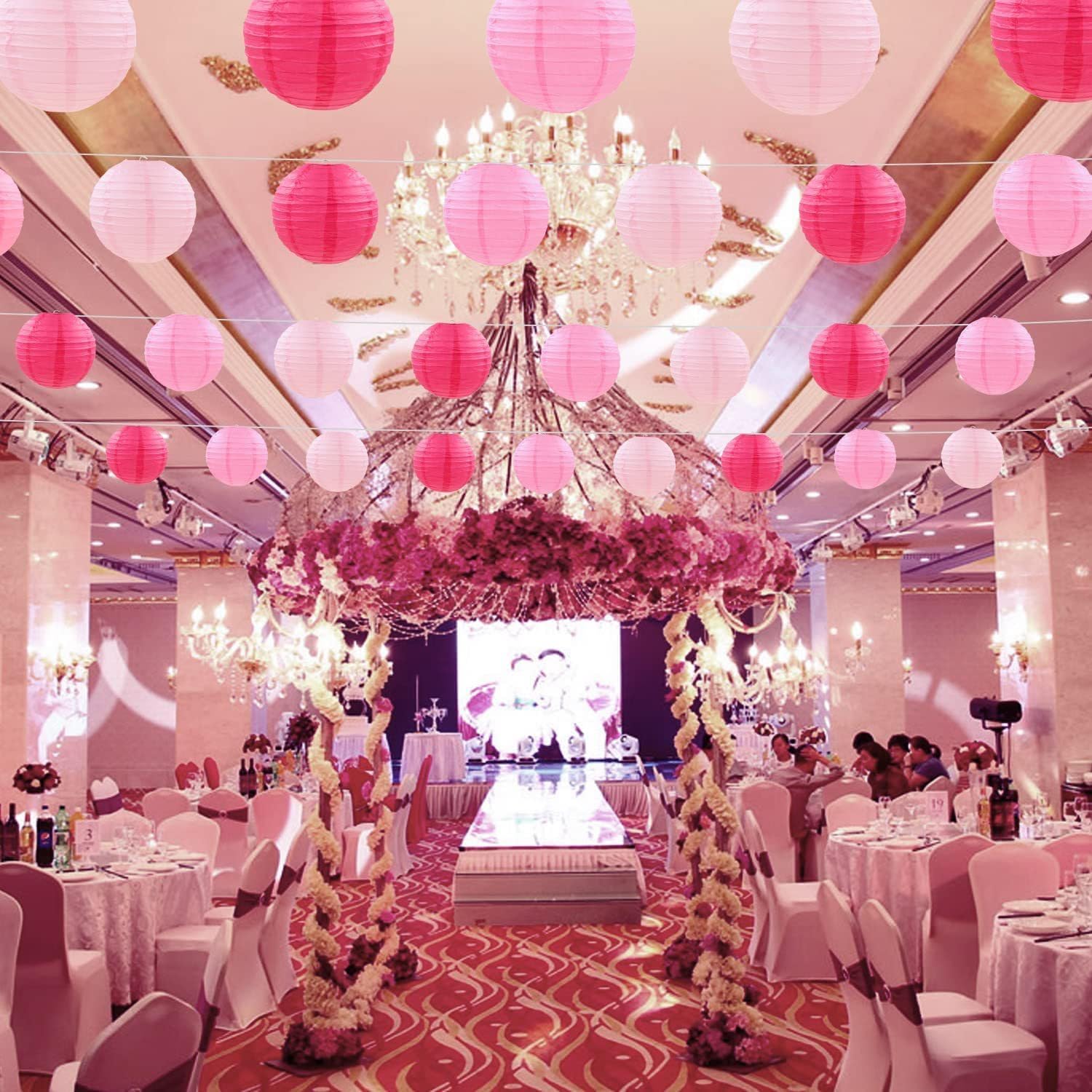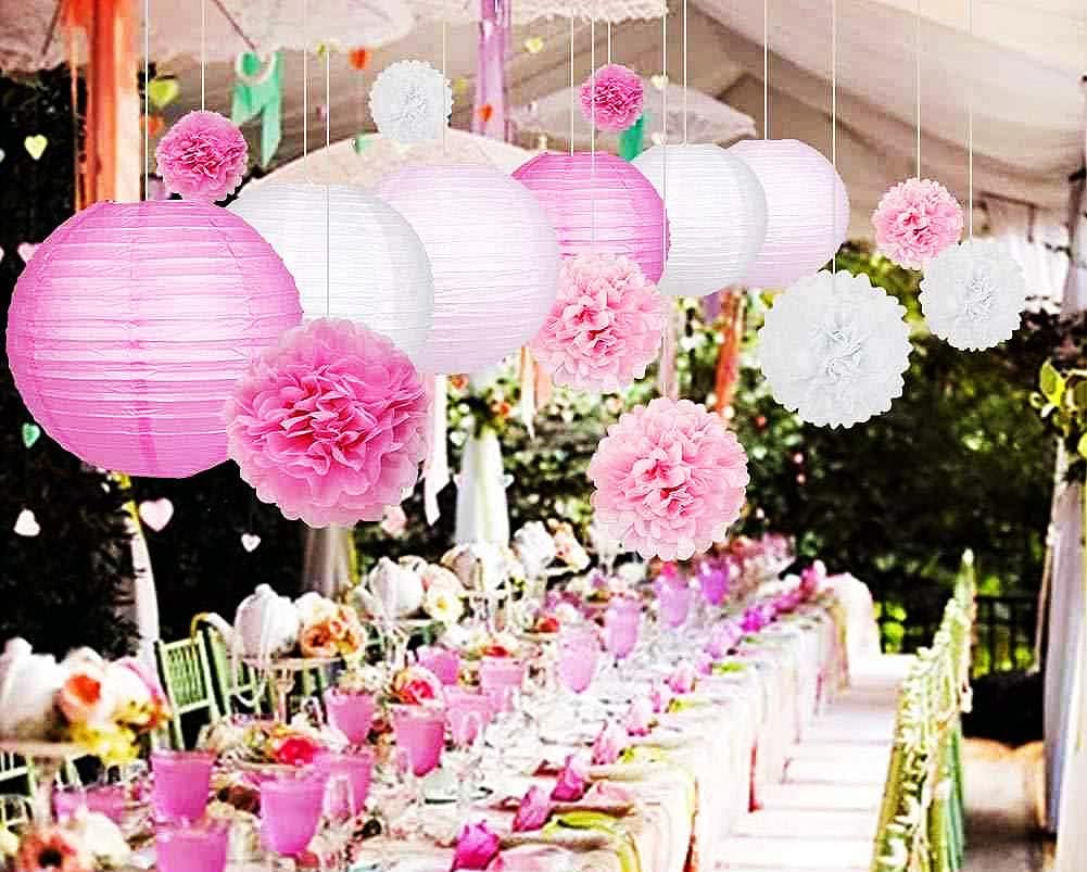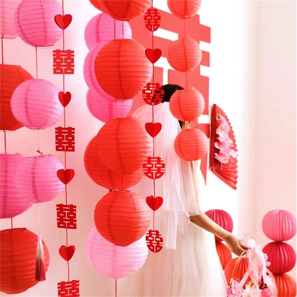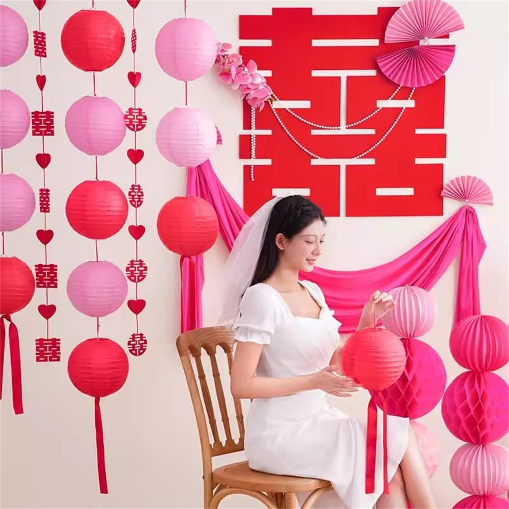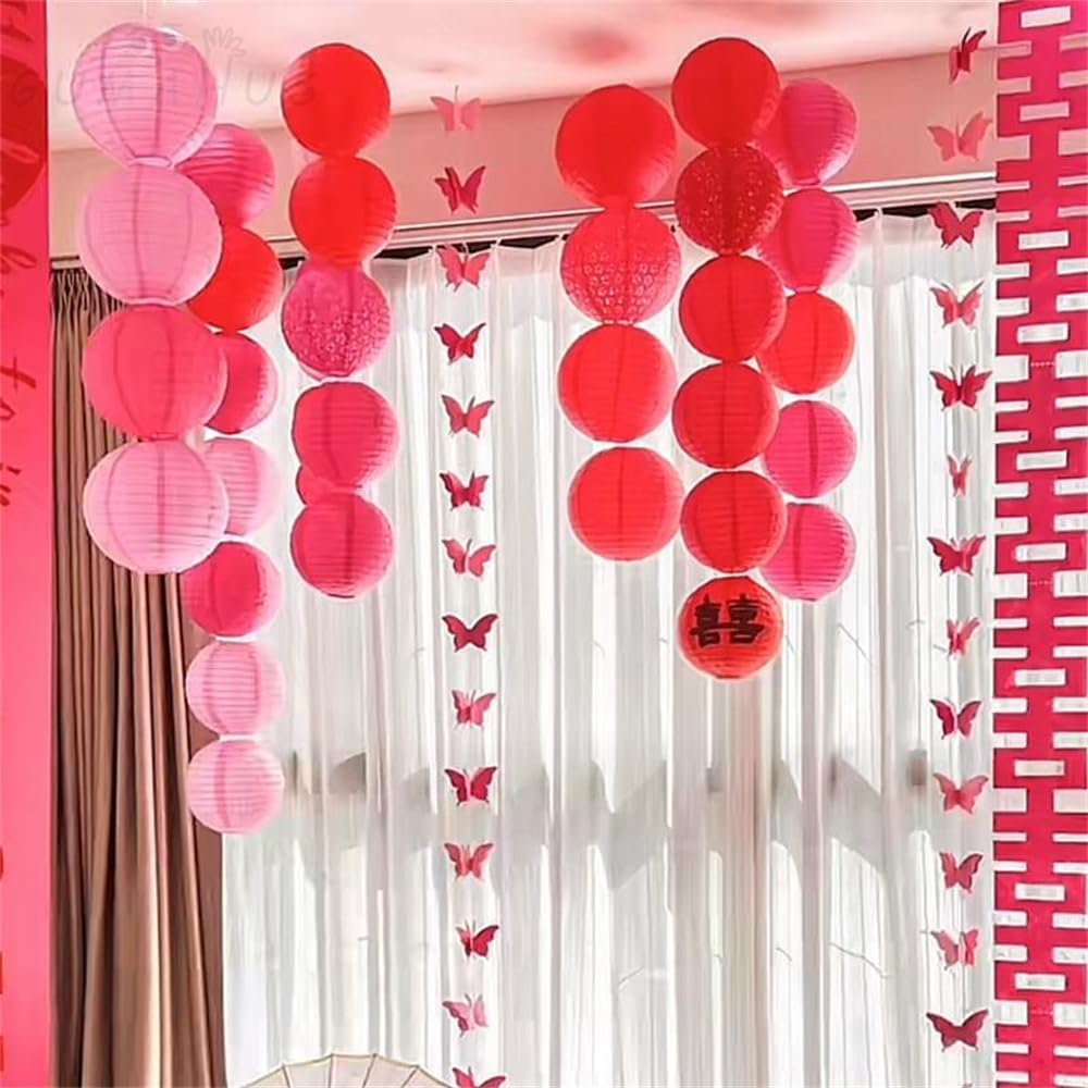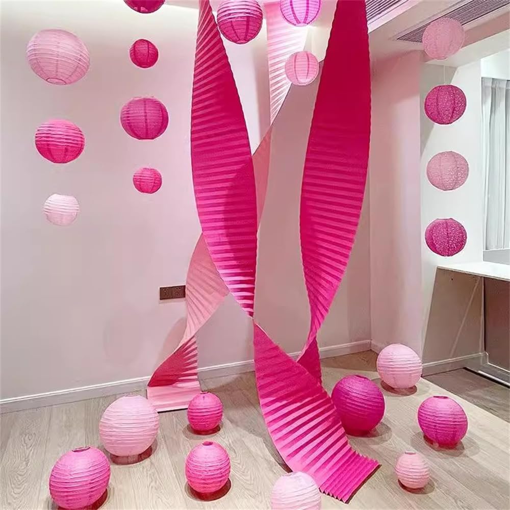 DUOLEIMI 提灯セット 30個 紙提灯 お盆 ちょうちん 5種サイズ各6個 紙 ランタン カラー 提灯 祭り 灯籠 新盆 初盆 お盆飾り パーティー イベント 飾り付け 居酒屋 誕生日 結婚式 開店 (粉色)
