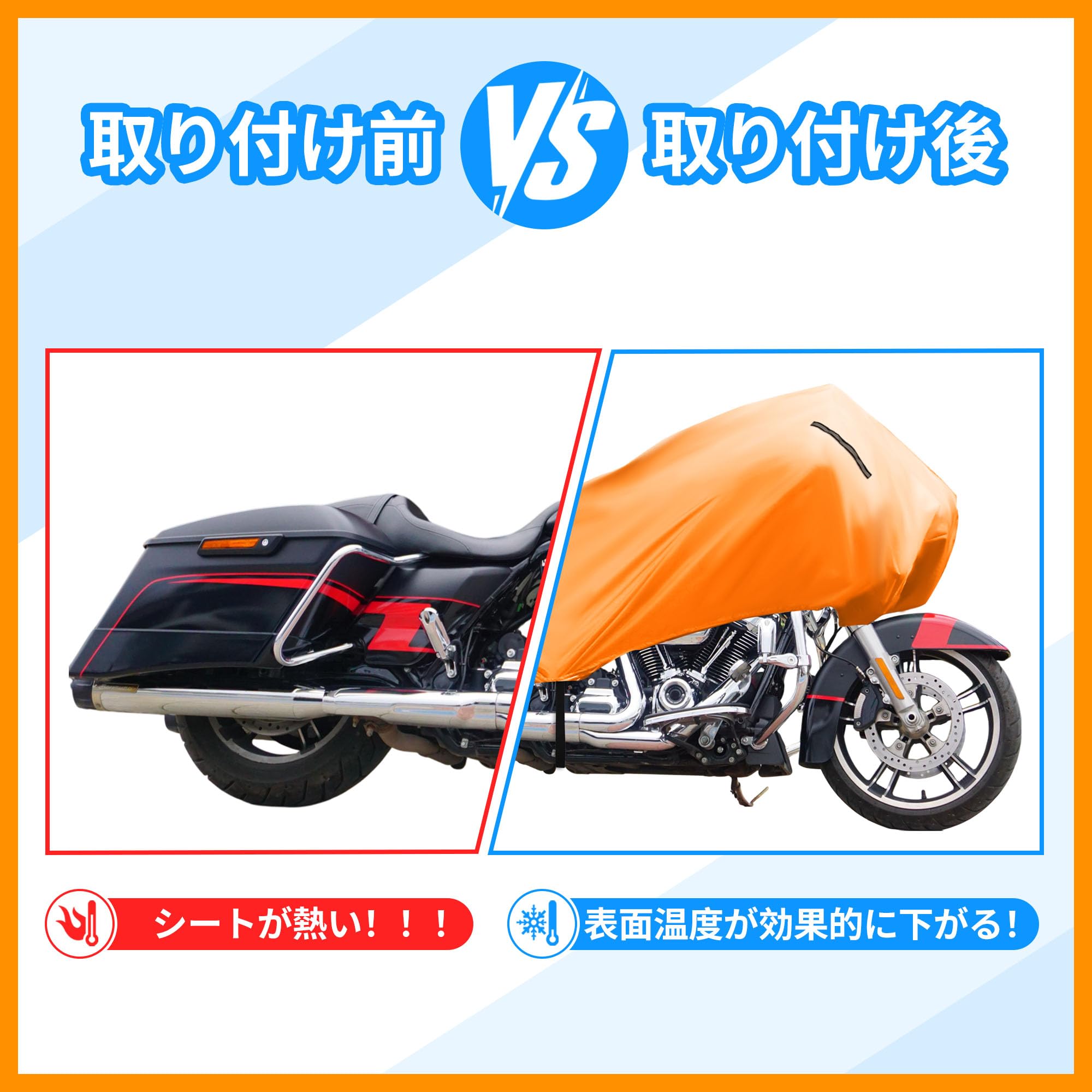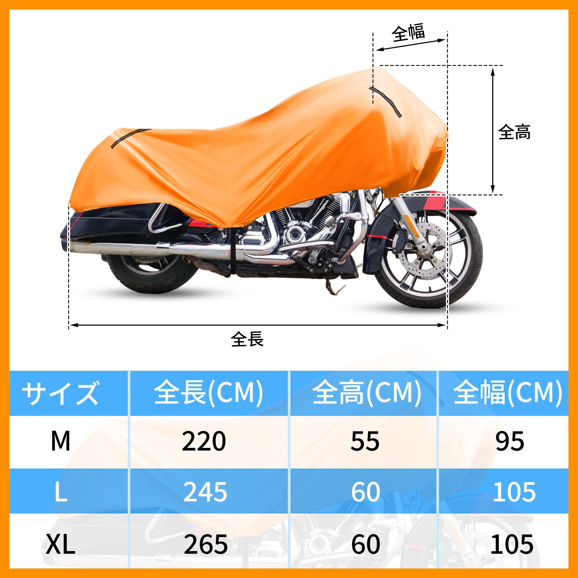 BULLSPANN バイク車体カバー ハーフカバー 防水 風飛び防止 UVカット 防塵 丈夫 厚手 軽量 収納バッグ付き XL オレンジ Harleyに対応 Touring FLHRC FLHRに対応 Hondaに対応 Gold Wing Touringに対応 Yamahaに対応 Touring XV 1900A XVS 1300A F J R 1300に対応