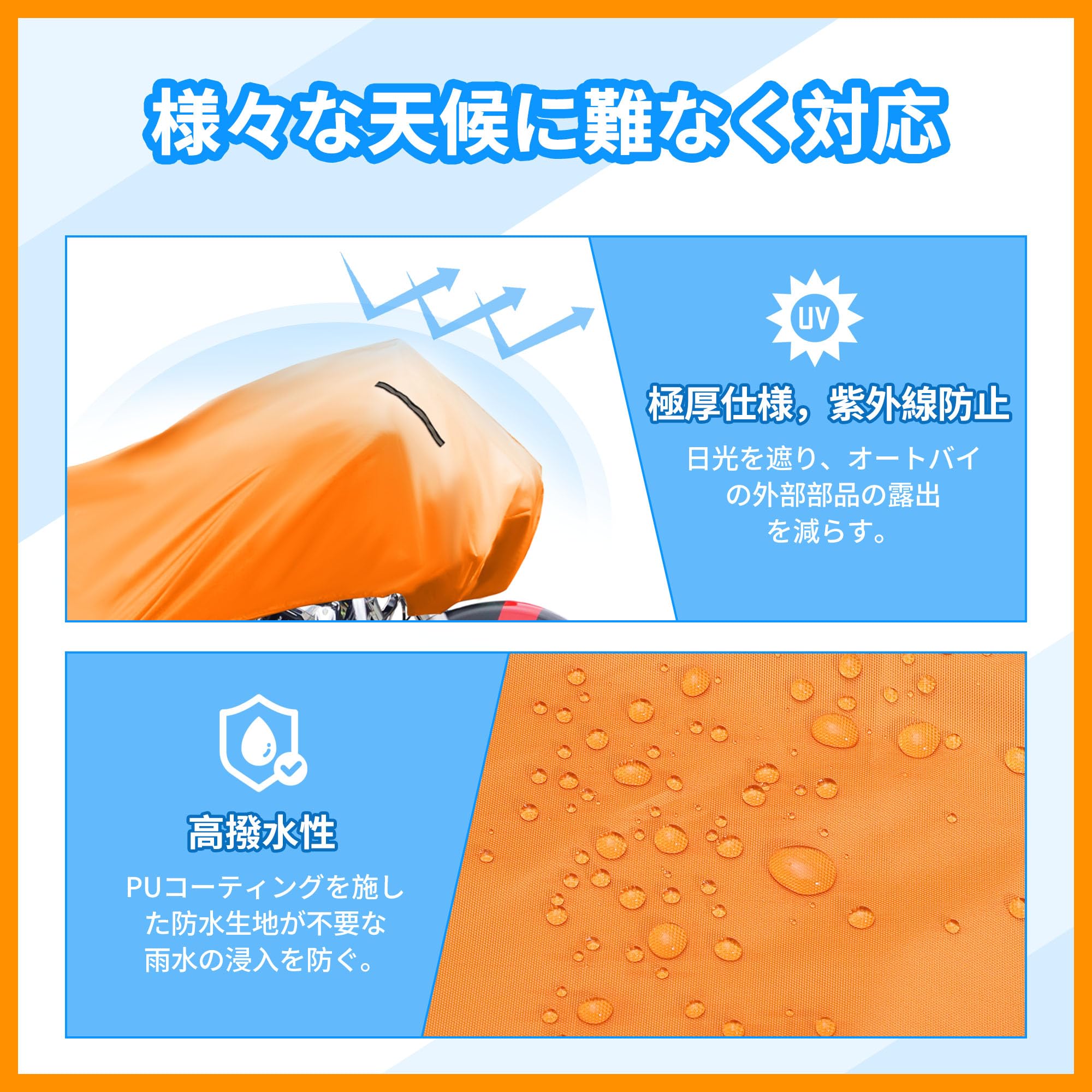 BstJyob バイクカバー 300D 厚手 【絞り腰帯あり 強風に負けない 沿海地域向き 8サイズあり リアbox対応 厚さ選択】 完全防水 耐水圧40000mm 丈夫 破れない 裾絞り機能 防風強化 防水 撥水 強紫外線防止 盗難防止 スクーター/原付/125cc/250cc用/400cc用 バイク カバー リアbox対応XL:全長220*前高110*リア高110